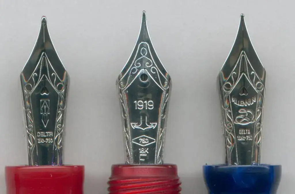 Se supone que las fabrica Delta, ya que son 100% hechas en Italia. Los plumines dejan de ser Bock, y ya no se ofrecen ni los de acero, ni los Fusion, ahora los hace la marca Santini (https://www.santini-italia.com/en/index.html, ex Ancora), y son todos de oro 18K.