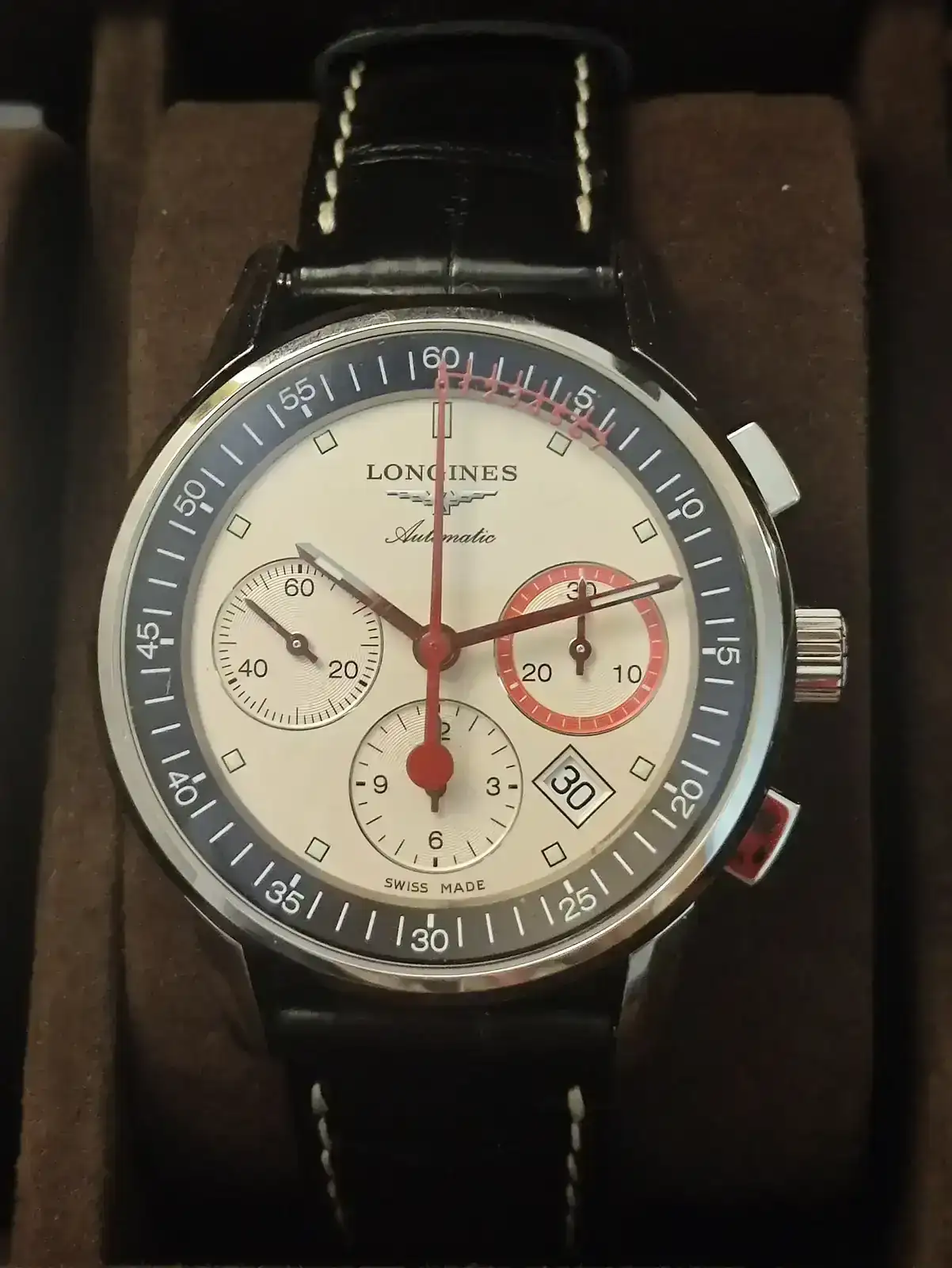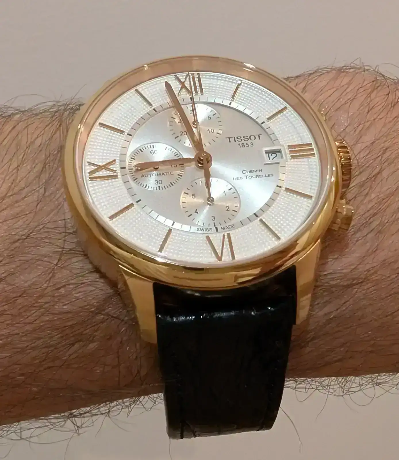 Fue buscando este precioso, desde mi punto de vista claro, Tissot Chemin des Tourelles Chronographe, pero lo veía demasiado deportivo para la boda.