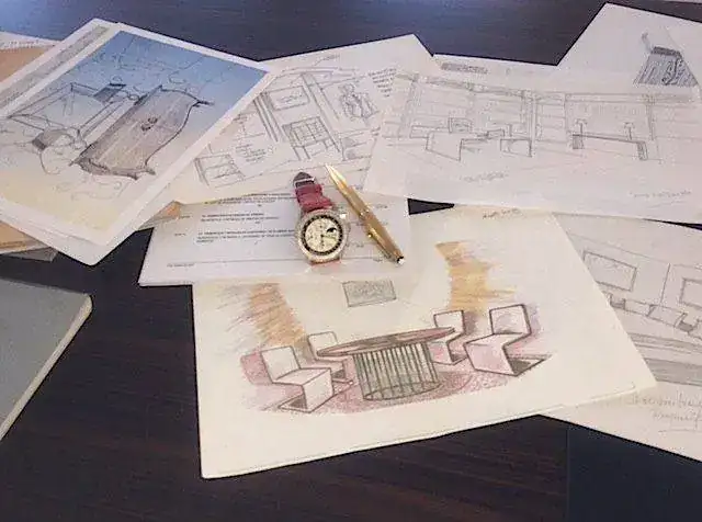 Podría haber puesto el metro o el ordenador donde hago los planos pero es en el concepto de proyecto inicial, donde al plasmar las ideas en papel como bocetos, la impronta del diseño y la fuerza del mismo cogen todo su significado