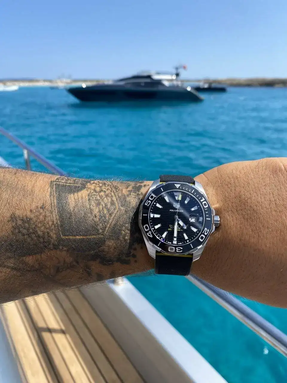 Muy guapo con el caucho, Capitán 🤘🏼Garmin Forerunner 945.. del que ni me atrevo a subir foto, reloj reloj Tag heuer Aquaracer, para trabajar, para viajar, para todo. El porque? No da el cante , es cómodo, tengo varias correas para él y sobretodo me parece súper robusto.