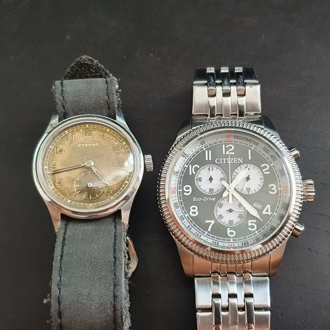 El mayor tamaño Seiko solar 43mm ( para mí gusto ya lo considero paellera por eso sale poco o nada , prefiero 41, 42mm máximo ) y el pequeño un Lotus de la comunión.