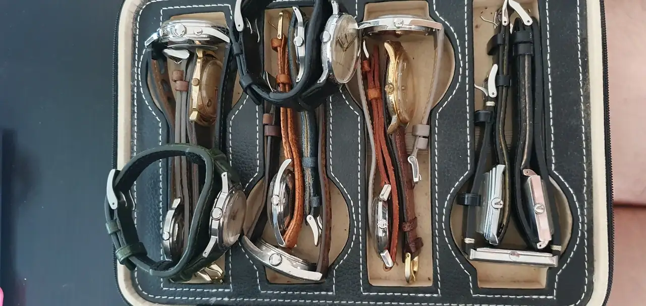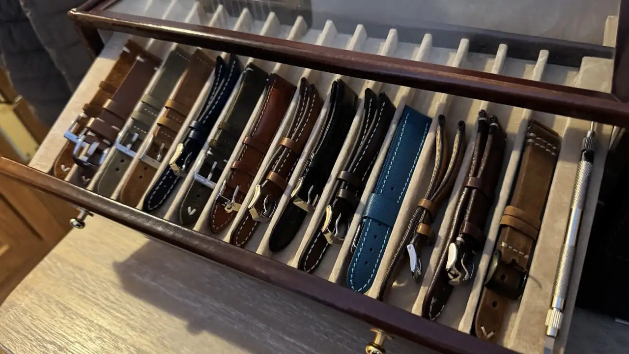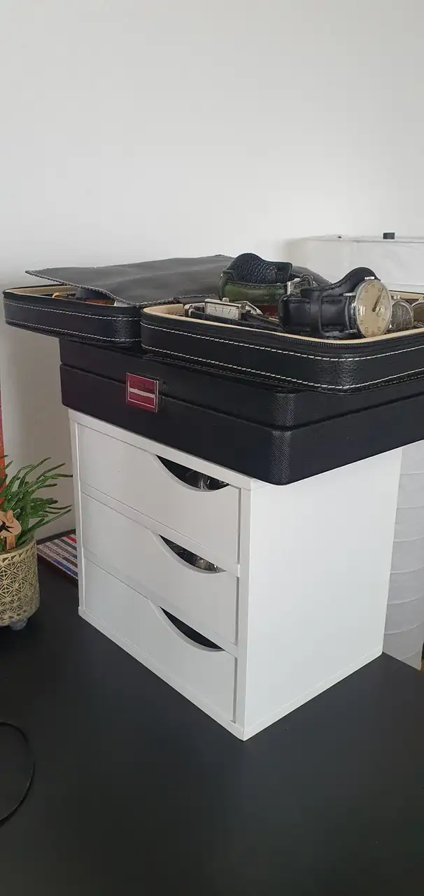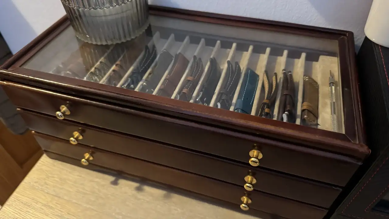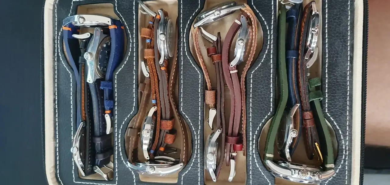 El otro día incorpore una idea a mi mundillo relojil, una caja para estilográficas que también son bien valoras en este foro ( no tengo ese hobby lamentable o afortunadamente ), y la convertí en una caja para organizar mis correas , creo que han quedado bien. Mi rinconcito se completa con una caja de rotación automática, y la caja de referencia, algo tal que así .