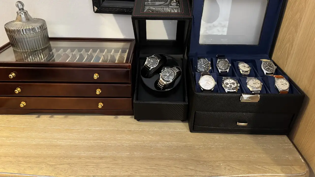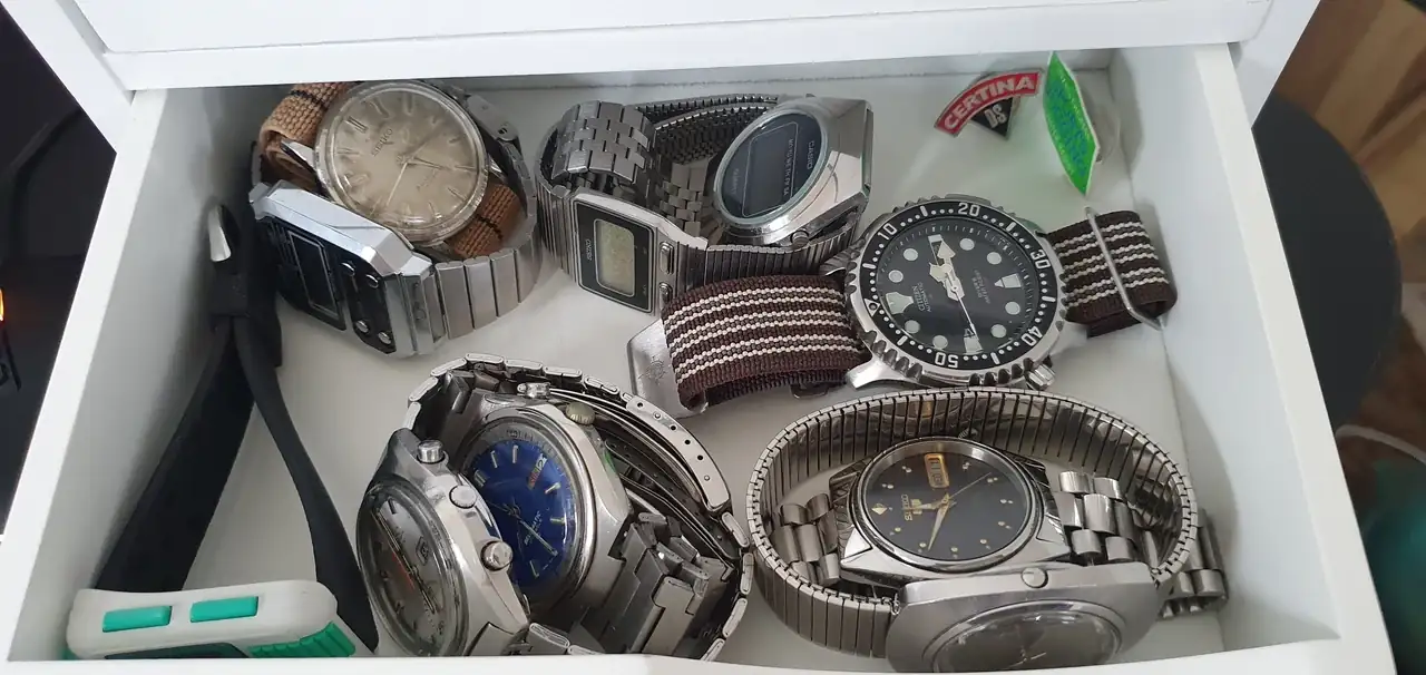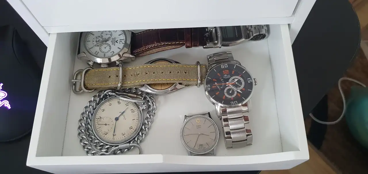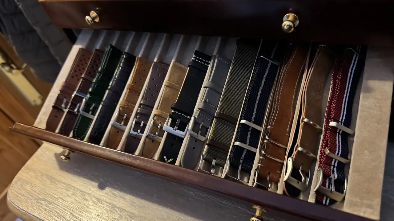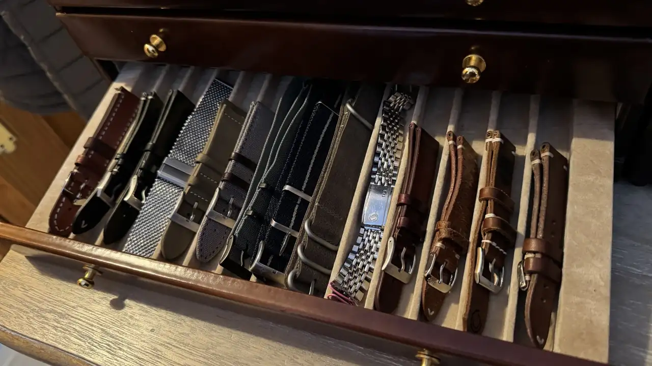 El otro día incorpore una idea a mi mundillo relojil, una caja para estilográficas que también son bien valoras en este foro ( no tengo ese hobby lamentable o afortunadamente ), y la convertí en una caja para organizar mis correas , creo que han quedado bien. Mi rinconcito se completa con una caja de rotación automática, y la caja de referencia, algo tal que así .