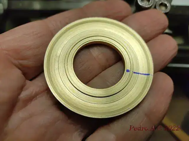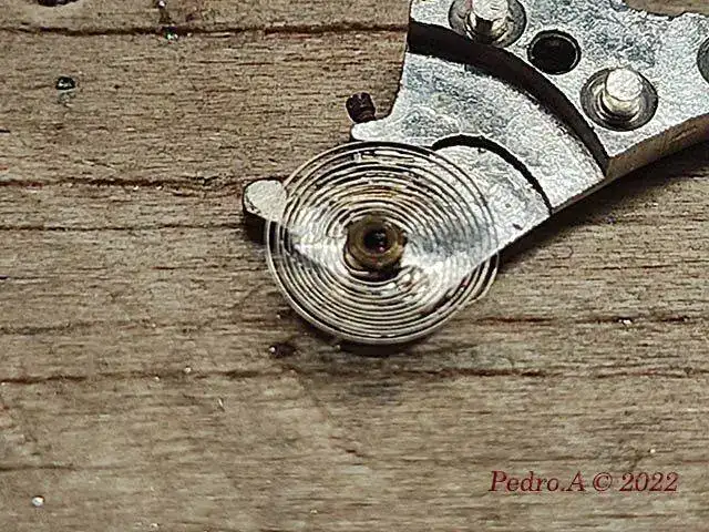 Después de un ratillo de trabajo el espiral esta enderezado. Para aquellos que se animen, aconsejo problarlo sobre el puente antes de montarlo en el volante, así podremos comprobar si la virola está centrada y el espiral horizontal al puente.