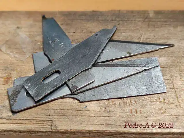 Hice varías consultas a una de la mejores relojeras que se puede encontrar hoy en día, Rebecca Struthers, sobre el mejor material a utilizar y me dijo que suele utilizarse el acero O1. Este acero se usa en cuchillería, así que pensé que las cuchillas viejas x-acto me sería de utilidad.