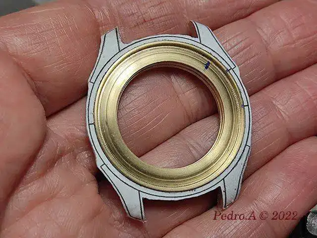 Empezamos con las secciones interiores y exteriores para movimiento, esfera, bisel y tapa.