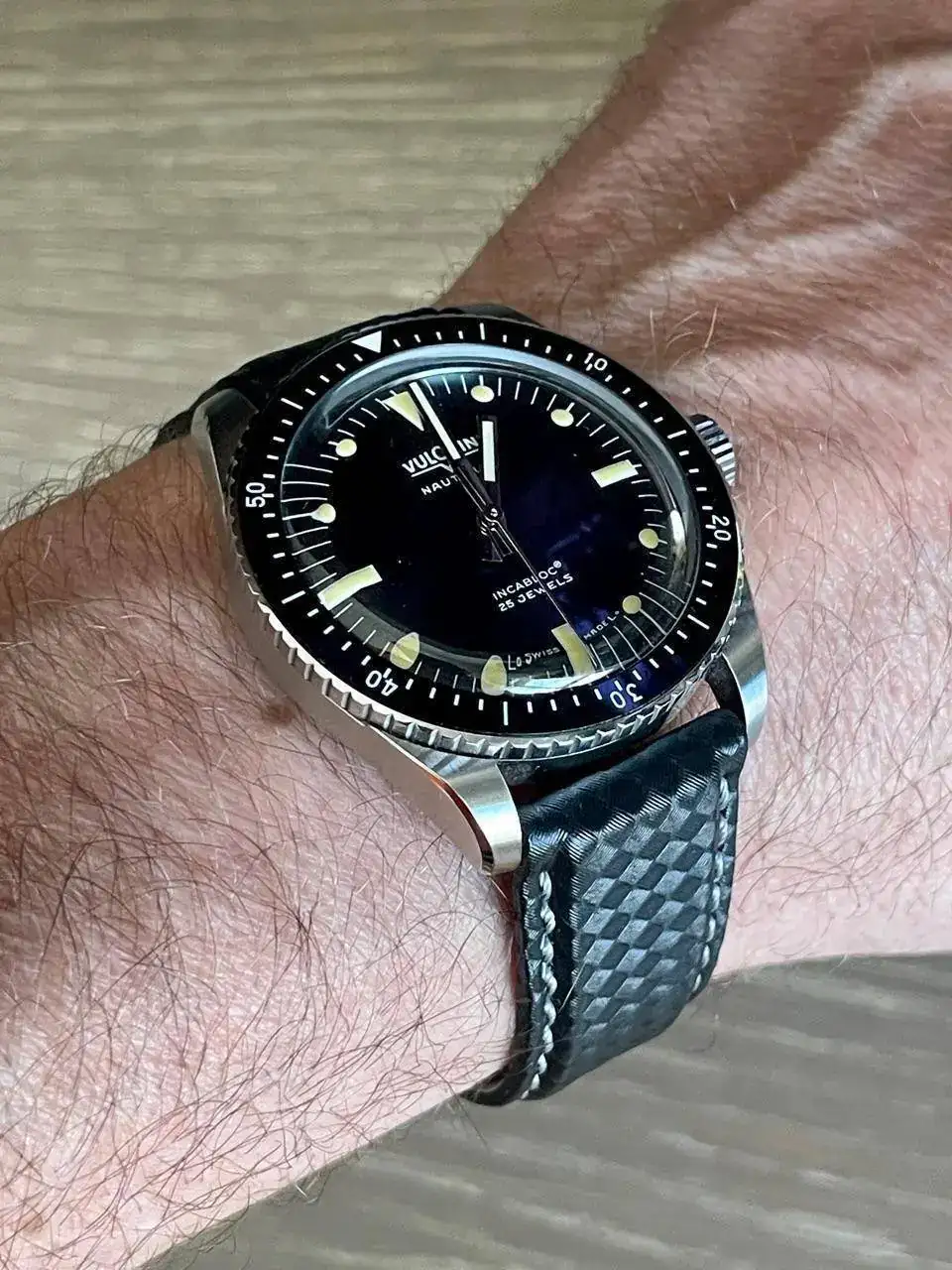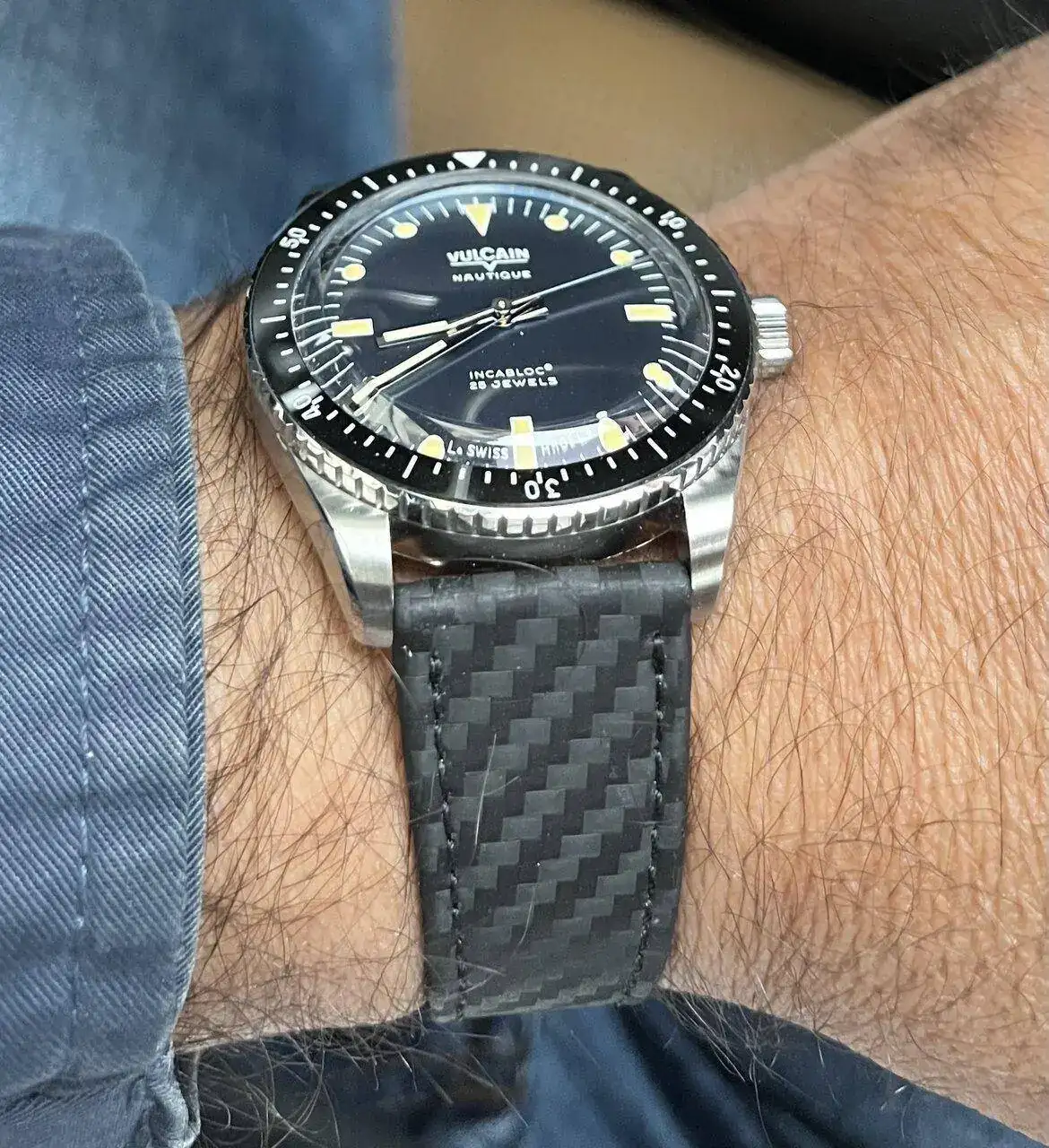 Enhorabuena es un gran reloj. Yo le he puesto una tropic de Rubstrap con sistema de pasadores sin herramienta y estoy encantado. Es de las pocas marcas q lo hacen en medidas 115/75 ideal para mi muñeca de 17cm. Un saludoPues otro que ha caído en los encantos de este vulcain… y que le faltan agujeros en la correa