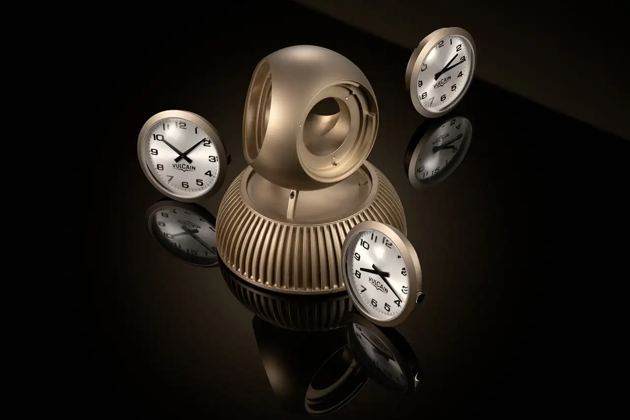 Vulcain reedita el emblemático reloj de la terminal TWA del aeropuerto JFK, una obra maestra de la arquitectura de los años 60, obra de Eero Saarinen y que en 2019 fue totalmente restaurado para convertirse en el lujoso TWA Hotel, preservando la grandeza y el legado de esta icónica terminal y, por supuesto, el reloj que la contemplaba. Esta reinterpretación como reloj de sobremesa compacto reproduce fielmente la forma original con un cuerpo de acero 316L y un acabado gris claro iridiscente.