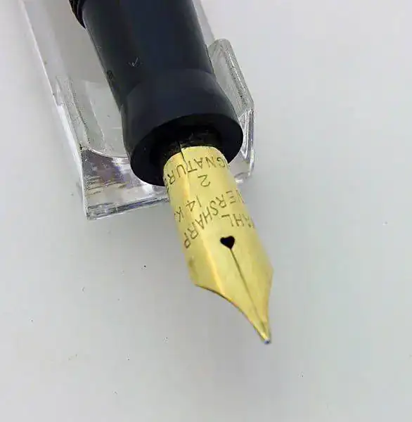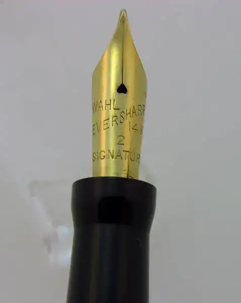 Plumín: Oro de 14 kt. Trazo probablemente M. Modelo Signature número 2.
