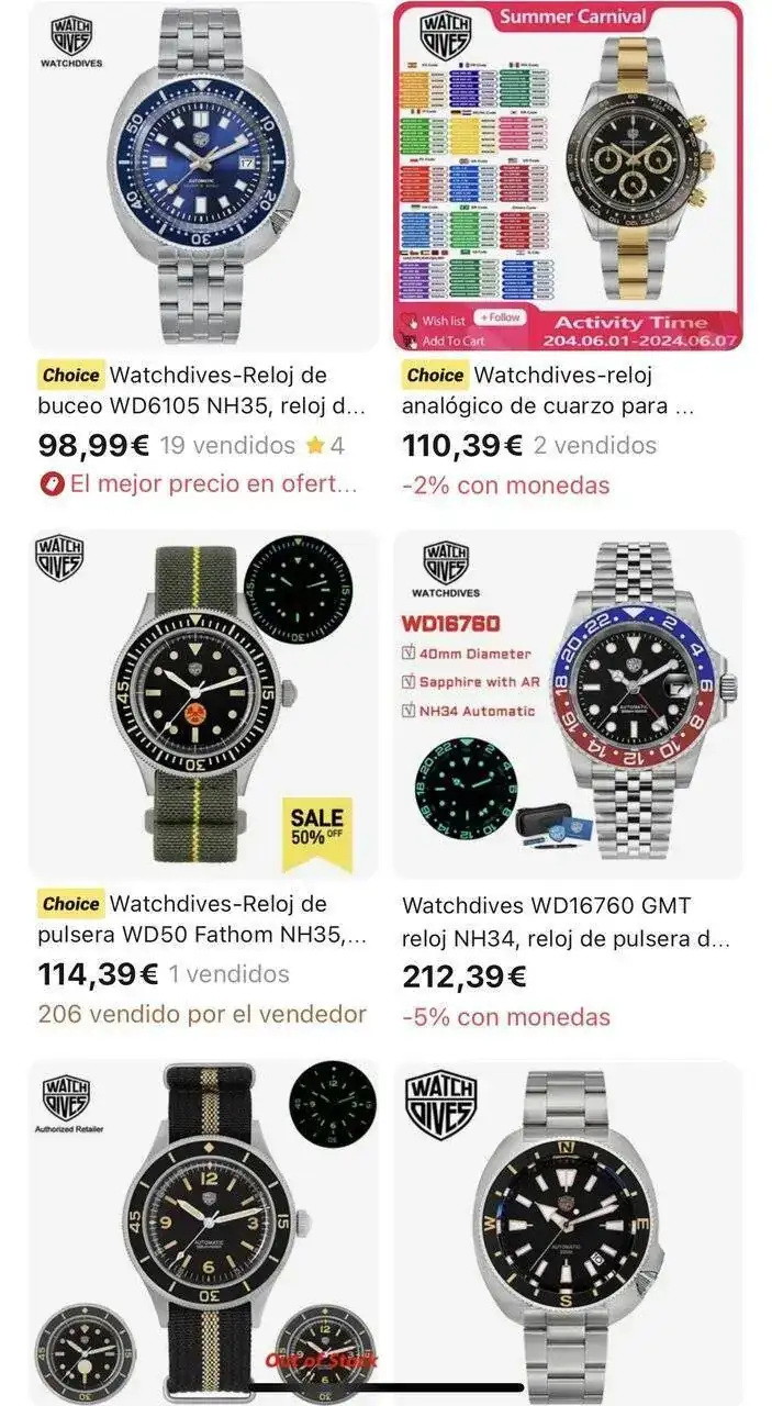 Y eso que no he tenido ningún reloj de esta marca en mis manos pero sólo viendo el catálogo en Aliexpres me surge la duda y a la vez el convencimiento de que es fabricada por Astar , que tengo entendido es quien fabrica para Steeldive y san martin, aunque dichas marcas nos hagan creer que los fabrican ellos, cosa que lo único que hacen es ensamblar los relojes y darles mayor o menor controles de calidad.