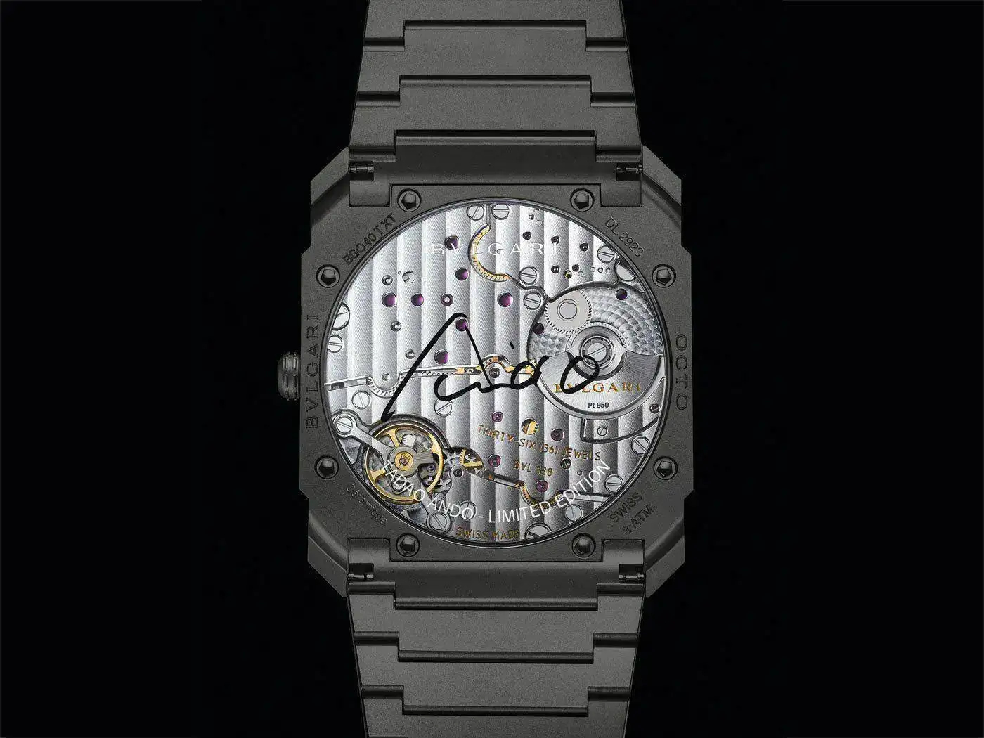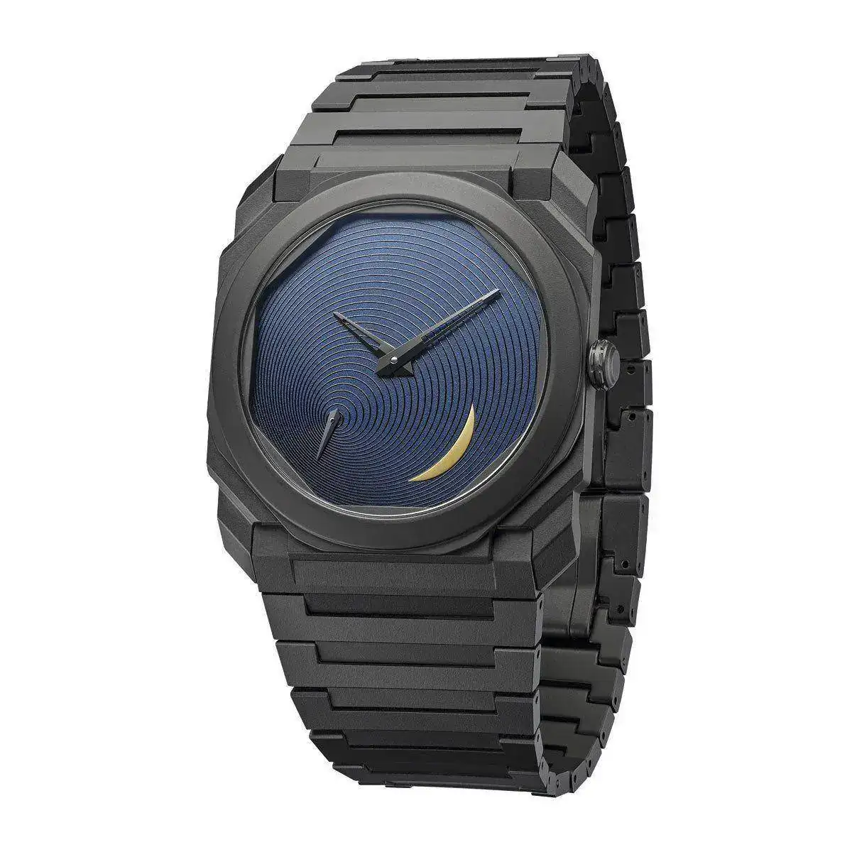 WowwwwwwwNo me va a dar la vida para todo, pero como sé que a @Albasit le gusta la marca (y los relojes raros) os dejo un Octo Finissimo by Tadao Ando (el arquitecto japonés) limitado a 160 ejemplares. Movimiento de manufactura ultra-thin Calibre BVL 138 en caja y brazalete de cerámica negra arenada (40mm de diámetro) fondo visto con la firma del arquitecto y esfera lacada en azul con motivo espiral. La luna es de oro.
