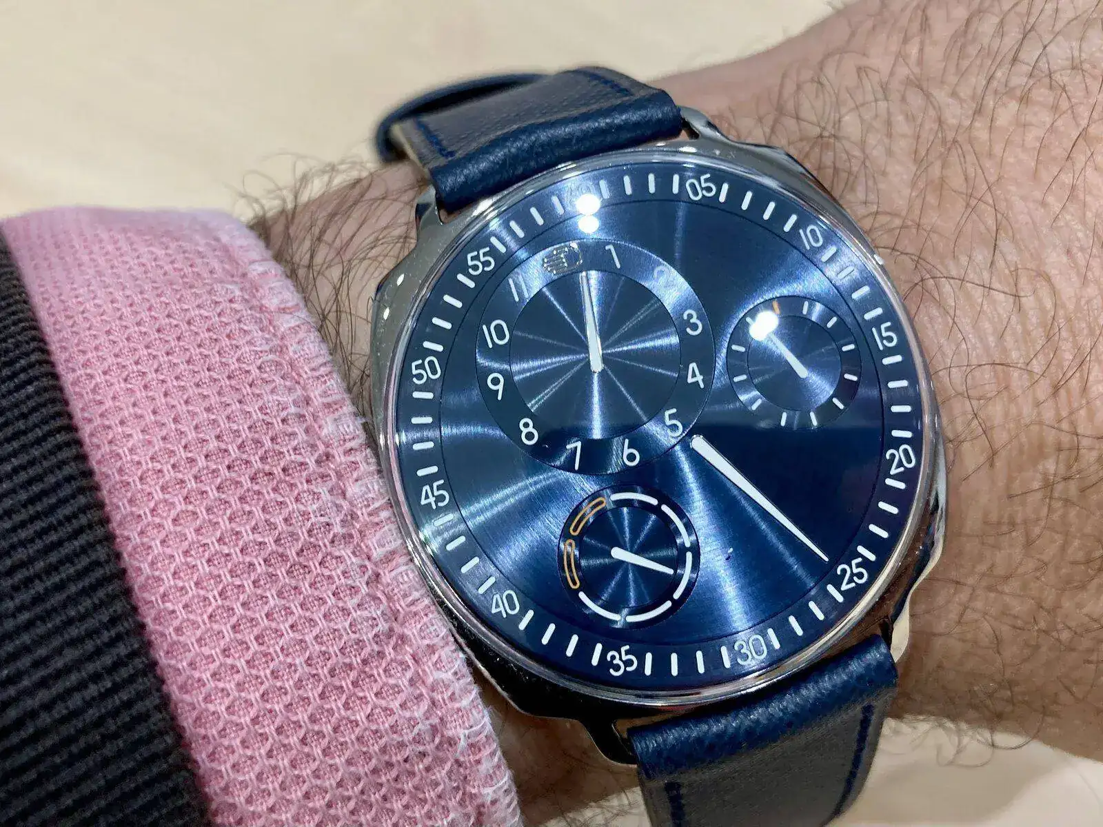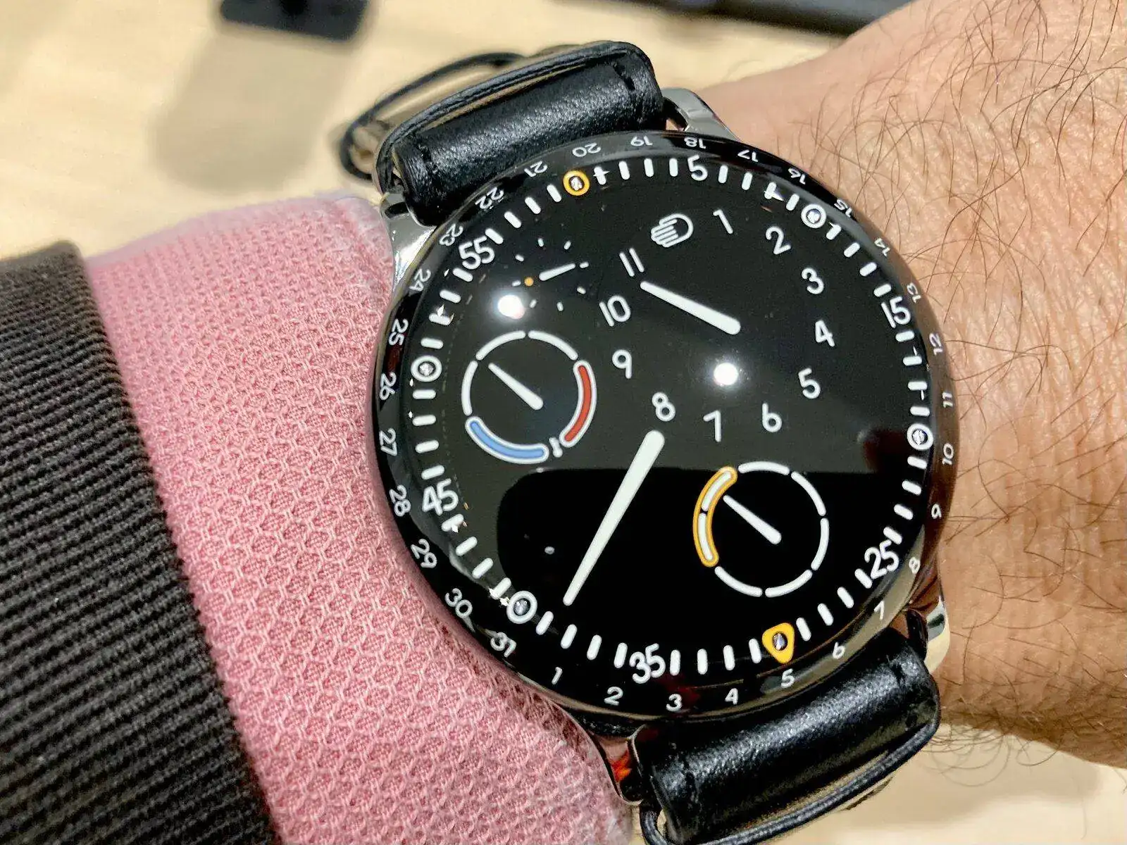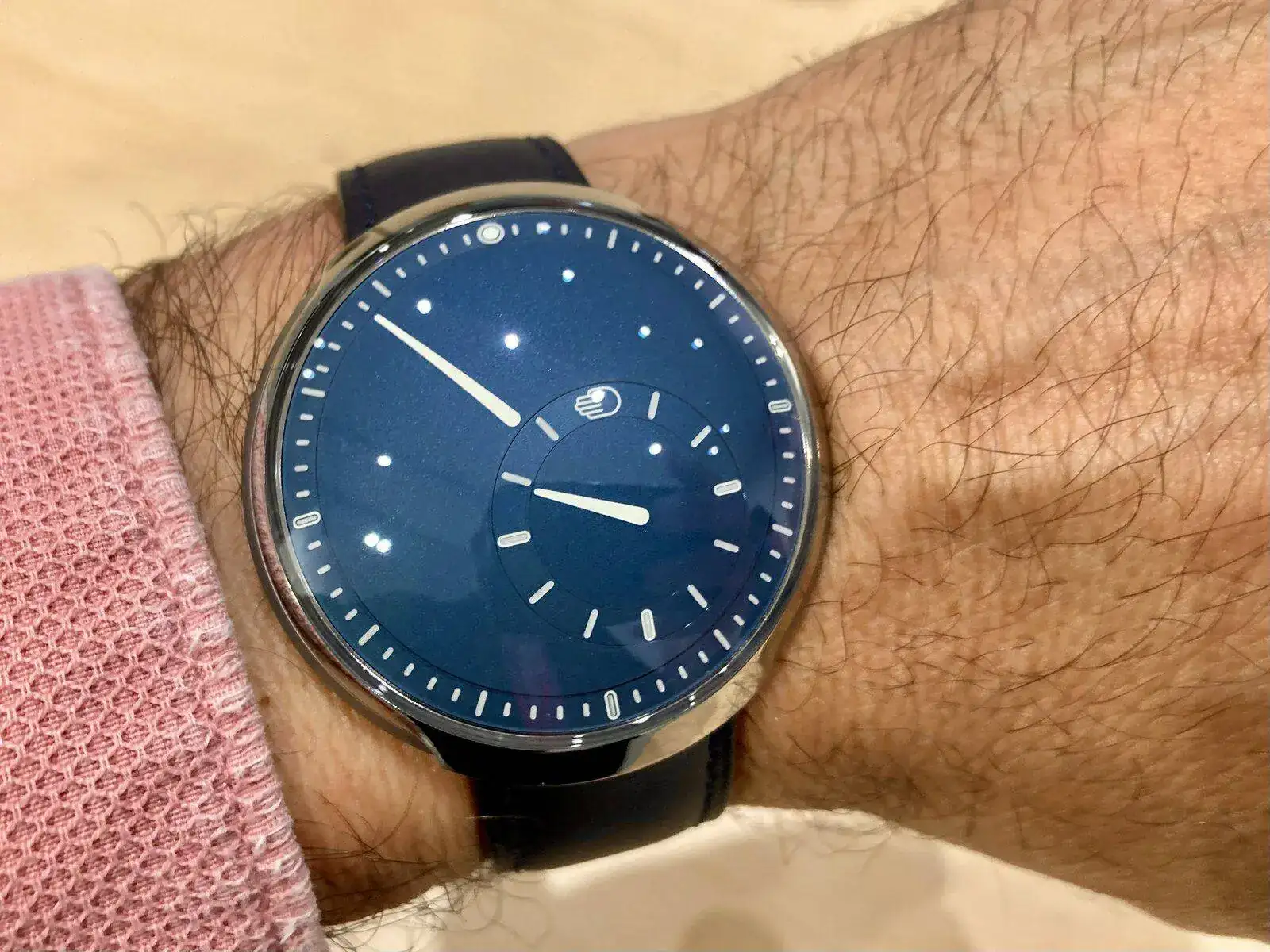 Pues bien, sin quitar nada de esto, le han añadido un módulo E que básicamente es un receptor Bluetooth para comunicarse con el smartphone, que le indicará al reloj el segundo huso horario son un sencillo toque para “despertarlo”… Es la primera vez que un, ejem, smartwatch tiene mis respetos. Lo desarrollaré en ese artículo que quiero hacer, pero de verdad que es una maravilla.