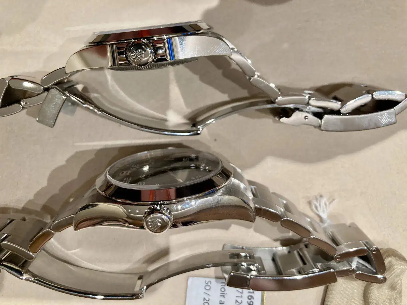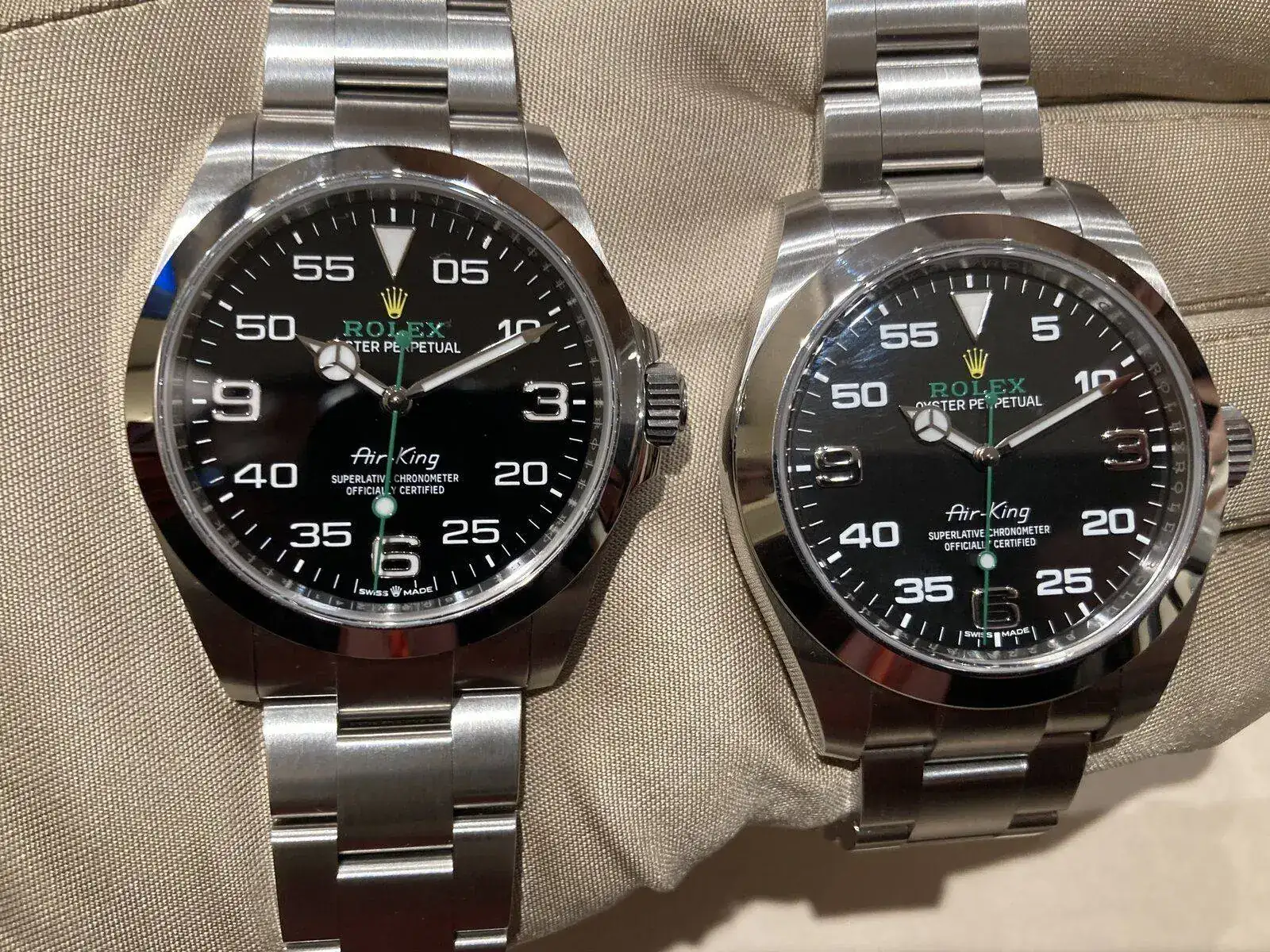 El Air King. Ha cambiado, vaya si lo ha hecho. Y no sólo en la esfera, donde aparece un cero junto al 5 y se han realzado los índices cardinales (3-6-9) sino que la caja es completamente nueva, con guarda corona y carrura aplanada. También adopta el cierre en lugar del OysterLock que tenía el modelo de 2016