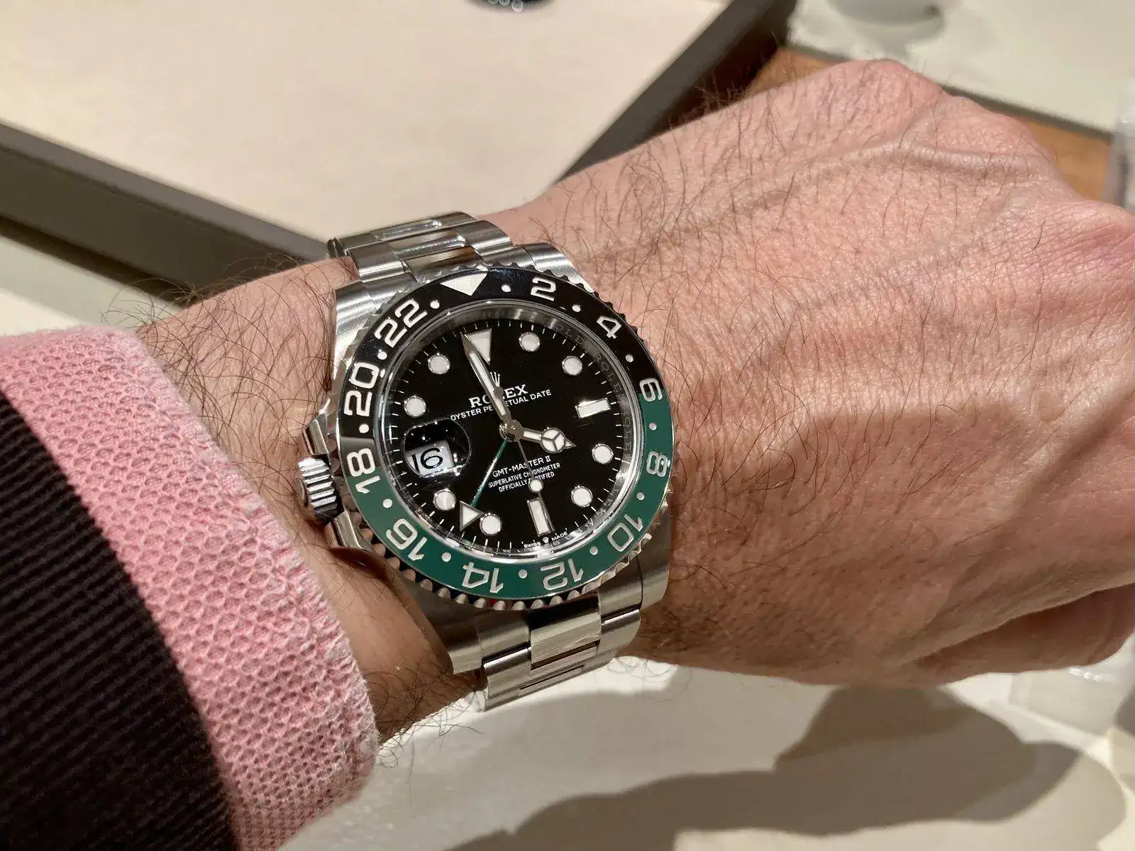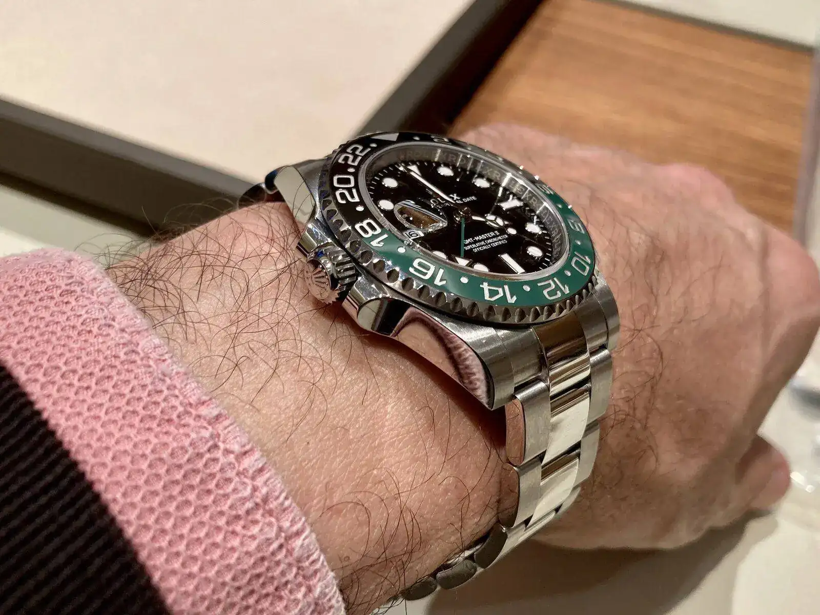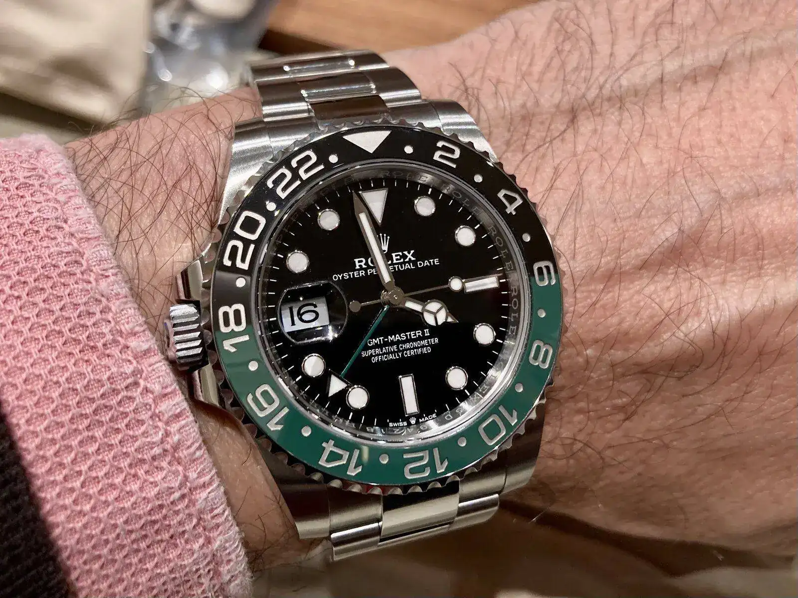 El GMT destro me descolocó en su momento, pero puesto en muñeca… le voy a dar una oportunidad, que ya me pasó algo parecido con el que acabaria llamándose Hulk. Por cierto, que este ya tiene su propio nick: Sprite…