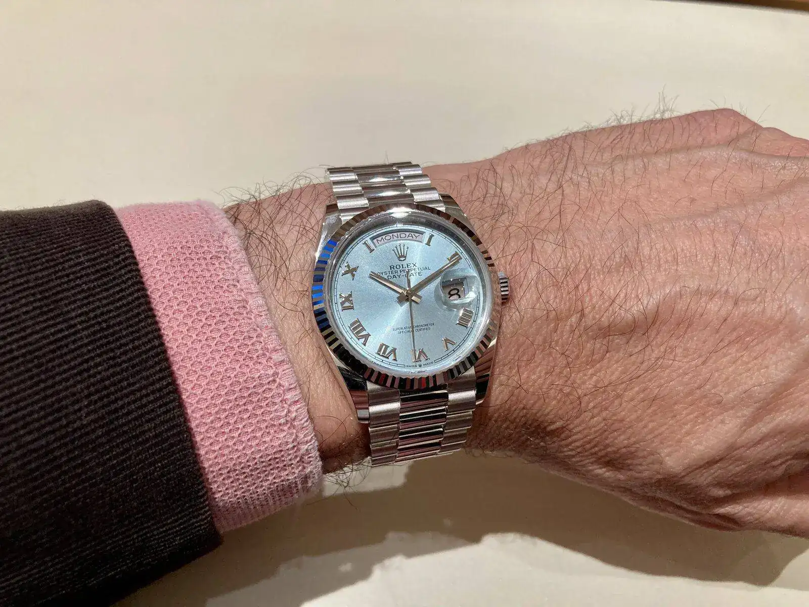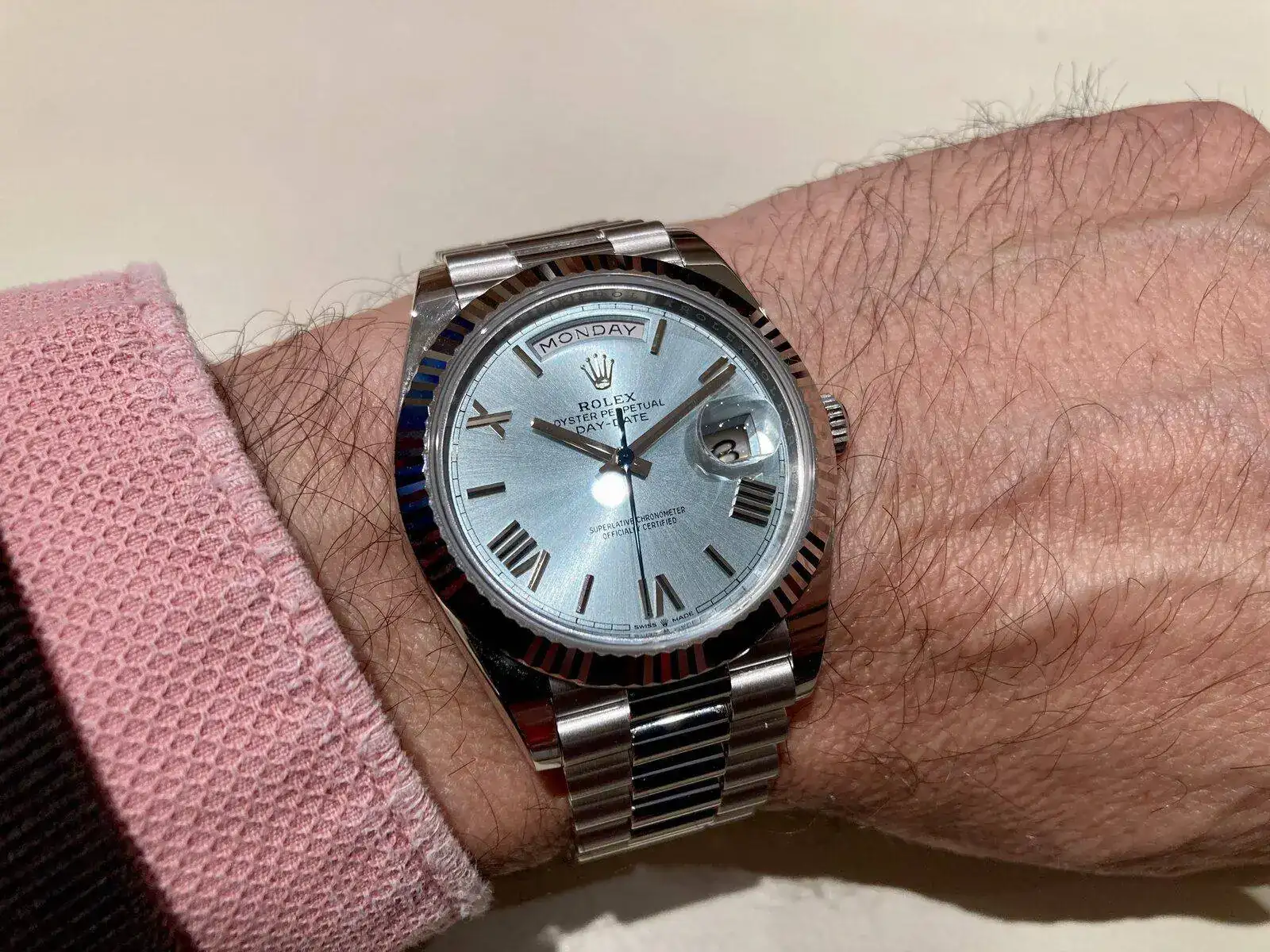 DayDate de platino.Aun siendo de 36 pesa un auténtico quintal. Pero quedar, queda elegantísimo: