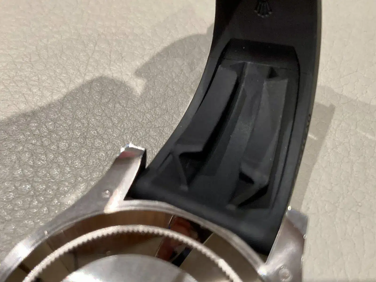 Detalle de la correa de caucho, que la hace comodísima (y que no es nuevo, también lo sé)