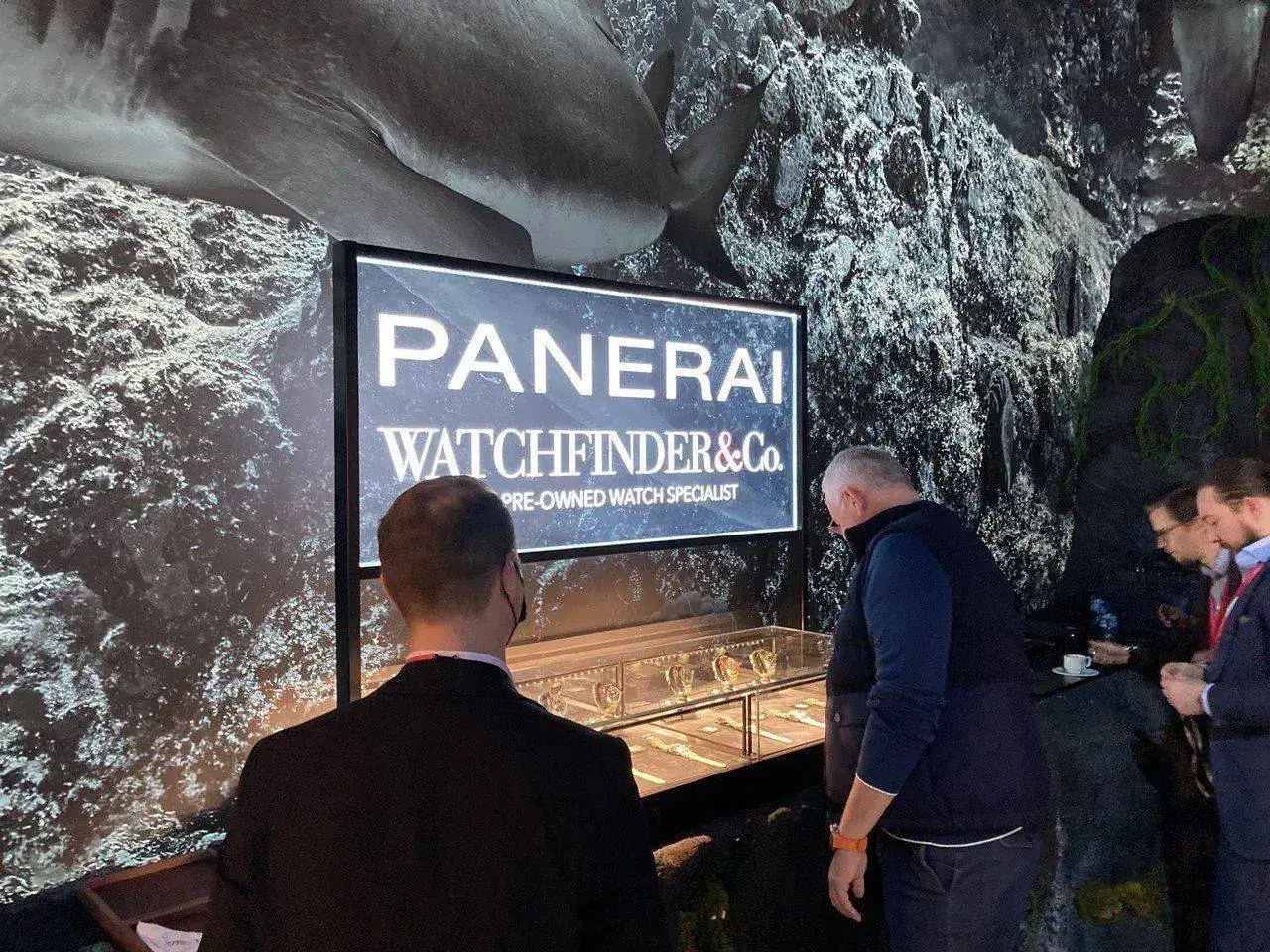 Curiosamente, la siguiente cita era en Panerai. Y digo curiosamente porque... no saqué una sola foto de lo que presentaban. Y no la saqué porque la presentación estaba muy mal preparada, en un stand completamente a oscuras y con acceso limitadísimo a los relojes. No es que no se pudieran tocar -que sí- pero sólo podías hacerlo con los dos que tenías al lado, aunque lo de sacarles imágenes era harina de otro costal. Una casualidad que esta no-visita se produjera muy poco antes de que el compañero