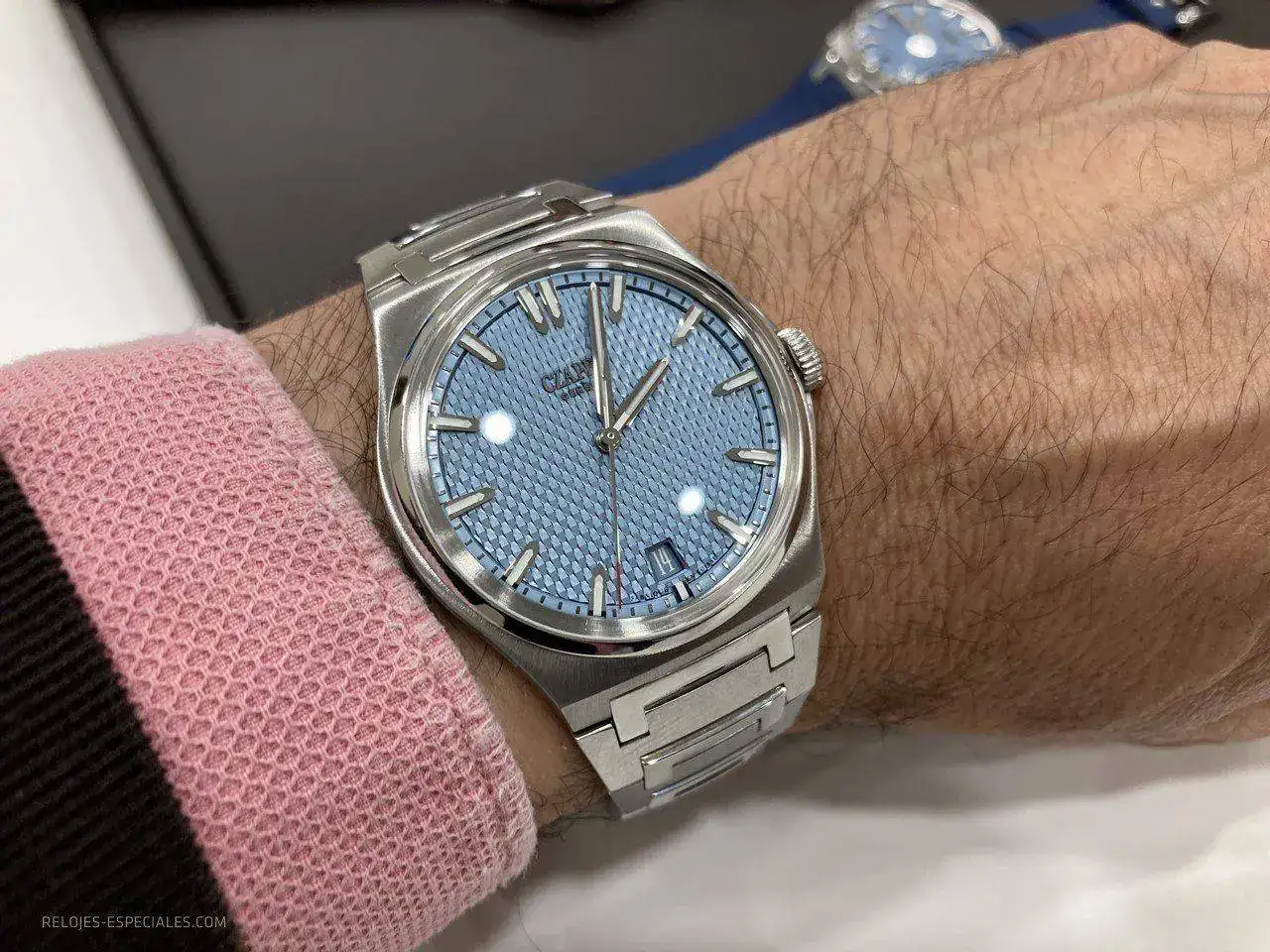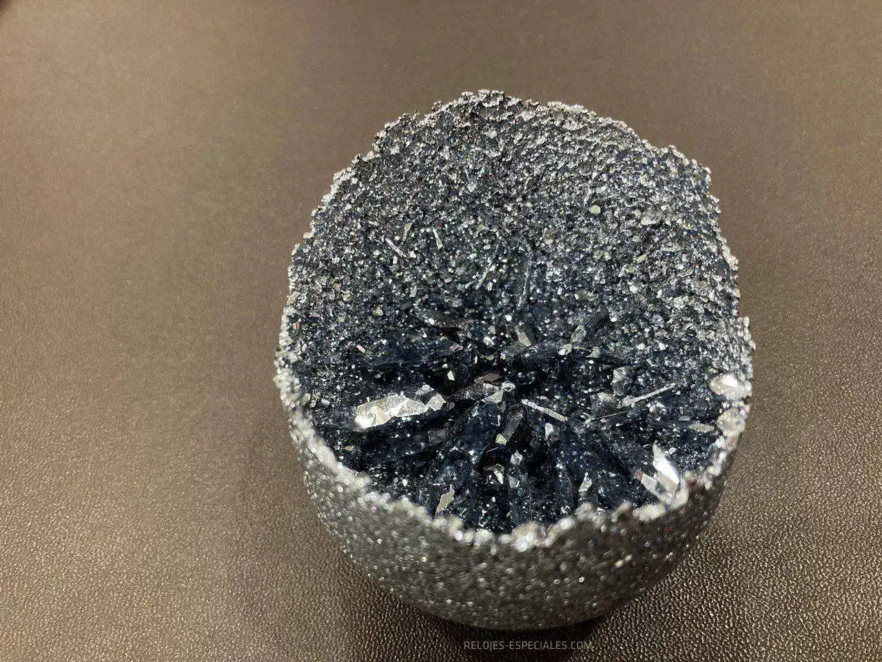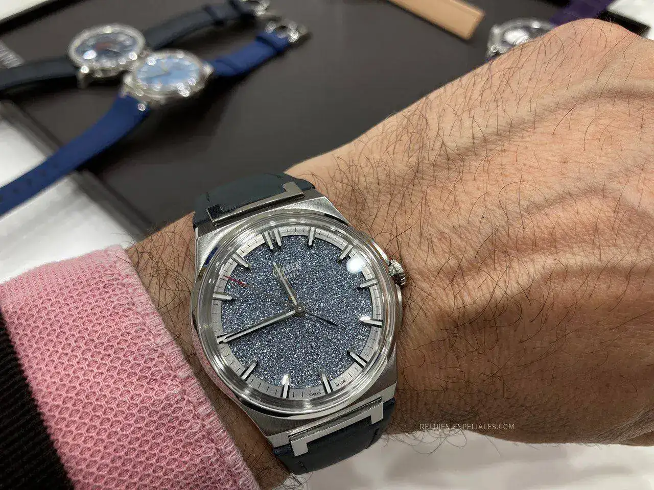 El diámetro de 38 está teniendo mucho éxito, y de momento ya tiene una edición especial con esfera de... osmio. Es un material tan raro (del grupo del platino) que él solo eleva el precio del reloj hasta los 76.000 €