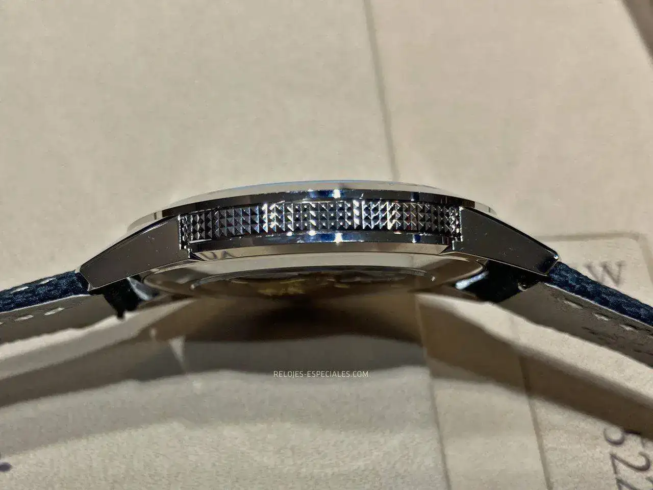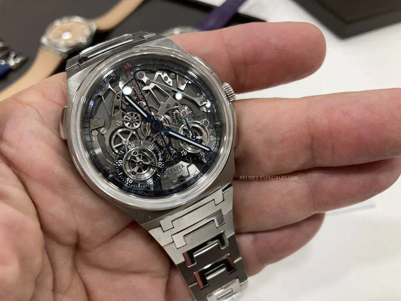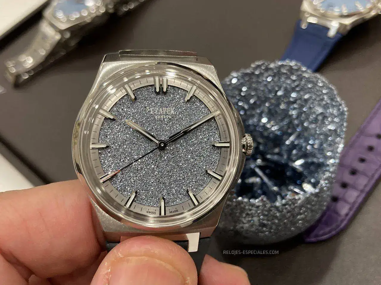 El diámetro de 38 está teniendo mucho éxito, y de momento ya tiene una edición especial con esfera de... osmio. Es un material tan raro (del grupo del platino) que él solo eleva el precio del reloj hasta los 76.000 €