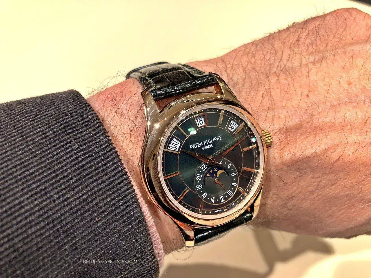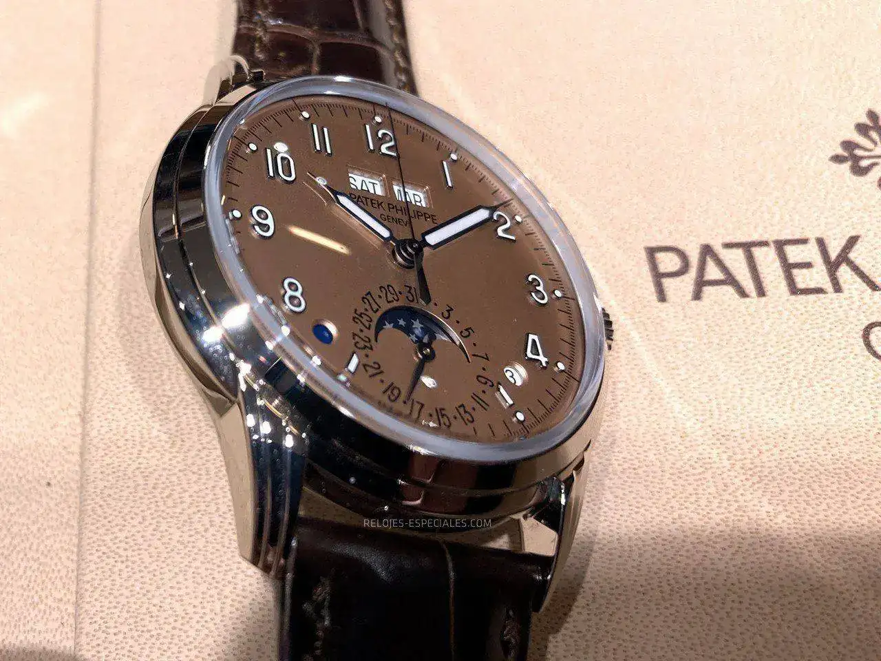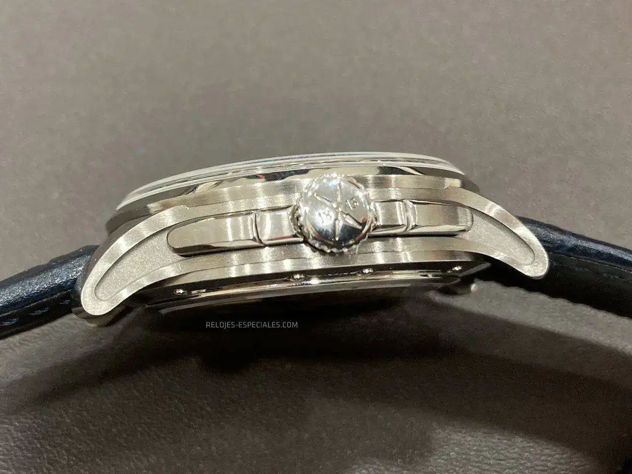 Llegando ya a las grandes ligas (si es que se puede hablar de eso en Patek) tenemos la referencia 5320G-011. También de 40mm, casi nadie diría que es un calendario perpetuo si no fuera por el detall de la ventanita a las cuatro indicando el año bisiesto. La otra ventana indica el día-noche. A destacar las asas escalonadas.