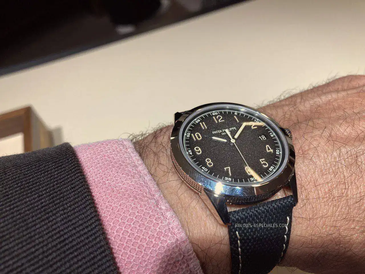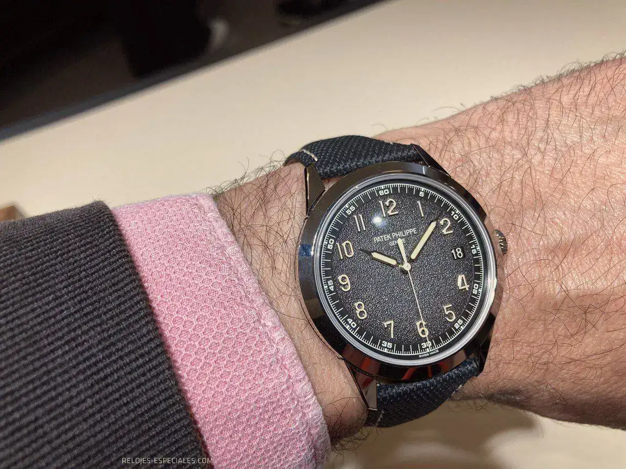 Si a finales de 2021 mostraban la enésima reinvención del Calatrava (referencia 6119) recuperando la decoración "Clous de Paris", este año se han sacado de la manga -es un decir- la quintaesencia de lo "deportivo elegante": el 5226G con su esfera "de asfalto" nos ha dejado a muchos con la boca abierta. 40mm de ¿sencillez? ¿simplicidad (en el mejor sentido)? completados con esos "clavos de París" que parece que han llegado para quedarse. Al menos por una temporada. La carrura, que está decorada con ese motivo da una apariencia visual más alta de lo que en realidad es y se percibe con el reloj puesto: 8,53mm, que cumple de largo la proporción 4:1 que tanto gusta al compañero @Doncainastyle . La única pega que yo le pondría es su exigua resistencia al agua: sólo 30 metros, y porque no la hay inferior. Oro blanco, 35.210 €, según la web de Patek. Eso sí, viene con dos correas. La negra de las fotos (becerro con motivo impreso) y otra de nobuk.