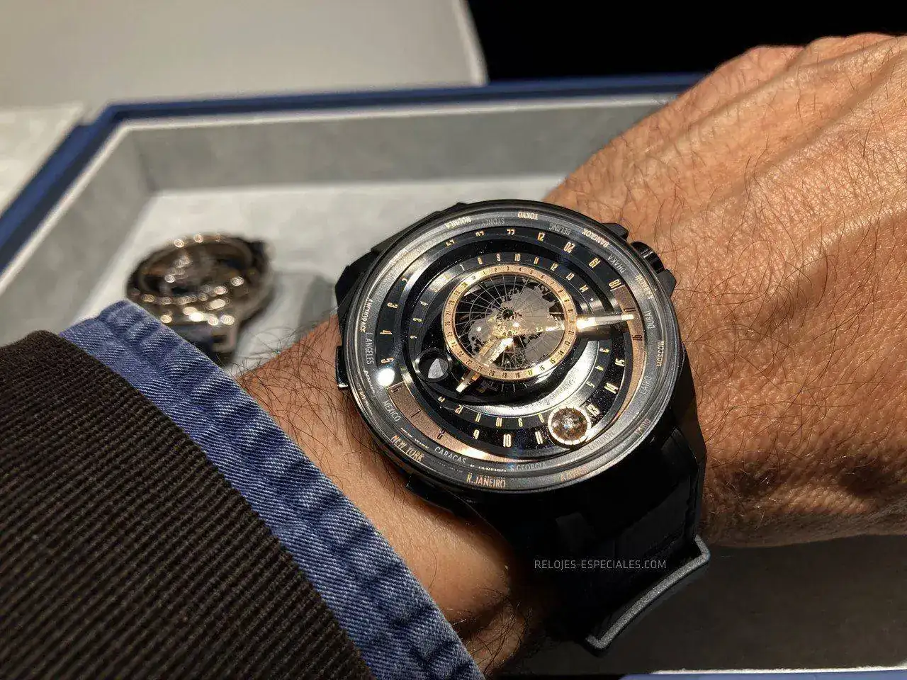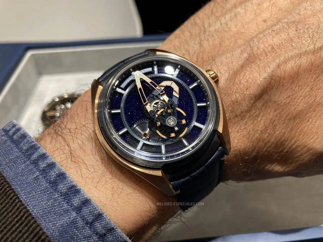 ° Reloj de 43 mm. Caja de titanio PVD azul y oro rosa 5N.