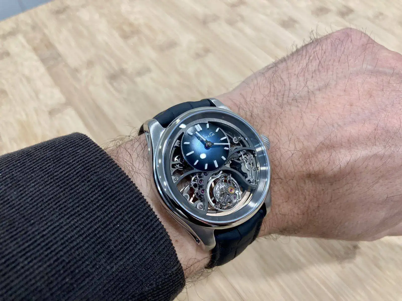 Y, por fin, esta maravilla. Moser dice que lo puedes llevar en tu día a día sin problema. No sé si será verdad para un reloj de 79.000 €, pero al menos lo han hecho estanco hasta 120 metros. Más allá de discusiones, y como se dice coloquialmente, en muñeca es una p*** pasada…
