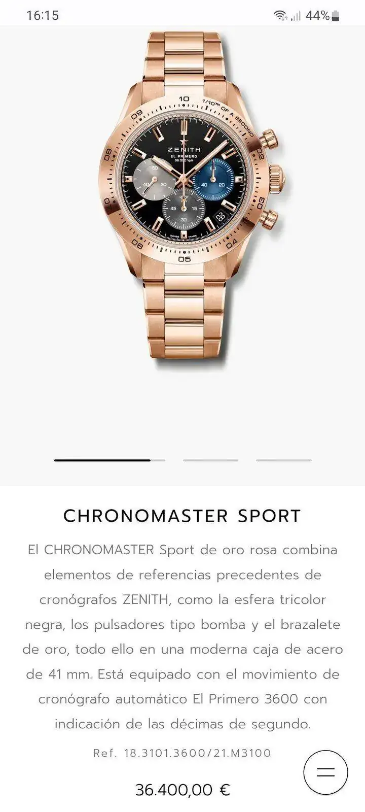 El bisel es de oro sólido, al igual que la corona y los pulsadores del cronógrafo, mientras que los eslabones centrales de oro de la pulsera en realidad no son de oro sólido, sino que los eslabones de acero llevan una capa gruesa de oro. Este es un buen compromiso, ya que tienes unos milímetros de oro, por lo que incluso si tienes un rasguño profundo, sería muy poco probable que vieras el acero debajo en lugar de los relojes chapados en oro, donde los arañazos pueden revelar el acero debajo con bastante facilidad. Obtienes todos los beneficios, pero sin el aumento masivo de precios y sin el peso del oro sólido.A mí me gusta MUCHO (ya me gustaba en el color actual).
