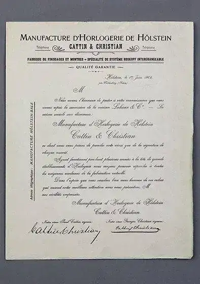 Paul Cattin y Georges Christian fundan Oris en la ciudad suiza de Hölstein. Compran la fábrica recién clausurada de Lohner & Co y el 1 de junio de 1904 firman un contrato con el alcalde de la localidad. Bautizan la nueva empresa con el nombre de Oris, inspirado en un riachuelo cercano.
