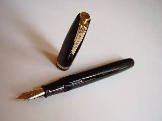 Vendo esta pluma Waterman modelo 512V, fabricada en Inglaterra en los años 50 en muy buen estado, completamente revisada, con saco nuevo y funcionando perfectamente; la leyenda del fabricante es perfectamente legible, los chapados de clip, anillo y palanca están como nuevos, el plumín perfecto.