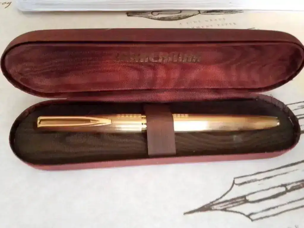vendo esta pluma, de sobra conocida, en muy buen estado (No aprecio ningún defecto) El plumín es de 18 Kt, y creo que F, pero no puedo asegurarlo. Los dorados de la sección no han perdido el color, que es uno de los puntos débiles de este modelo. Incluye caja y convertidor aerométrico. Pido 90 €, teniendo en cuenta su estado. Si te sirve el envío certificado a Península con número de seguimiento, va incluido, pero sólo me hago responsable hasta depositarla en Correos. Otros lugares y sistemas de envío, lo hablamos por mp.