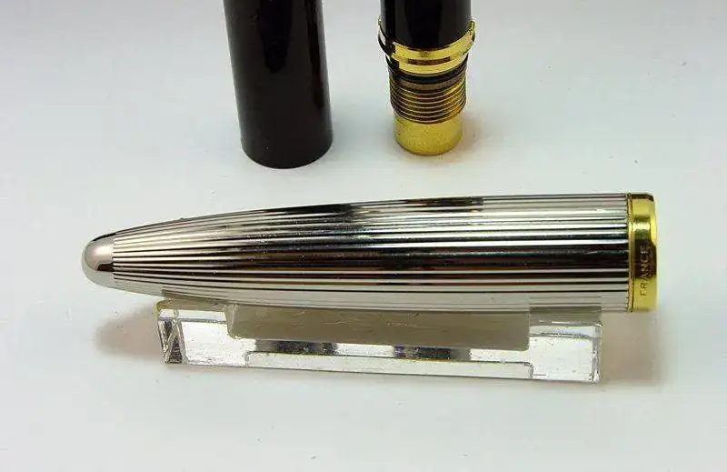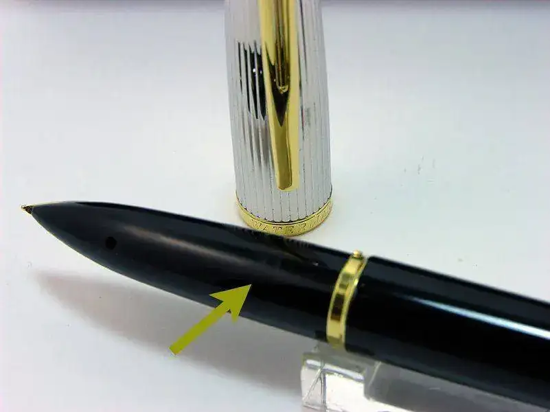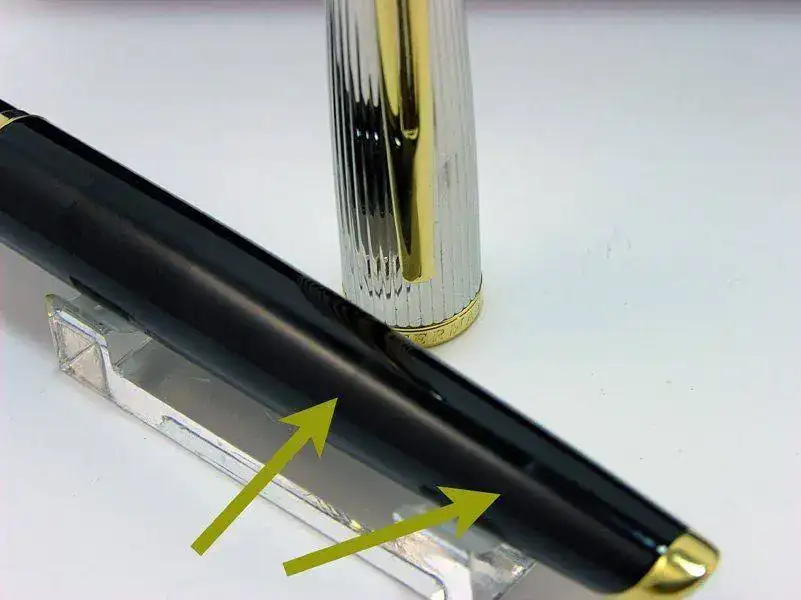 La pieza tiene señales de uso aceptable y su estado es muy bueno, sin golpes, rayas o defectos importantes. Presenta las típicas marcas circulares leves en la zona de la sección y en la zona posterior donde se encaja la capucha (se han intentado marcar en las fotos con las flechas). Incluye caja y documentación originales. No se incluye convertidor, cartuchos ni tinta.