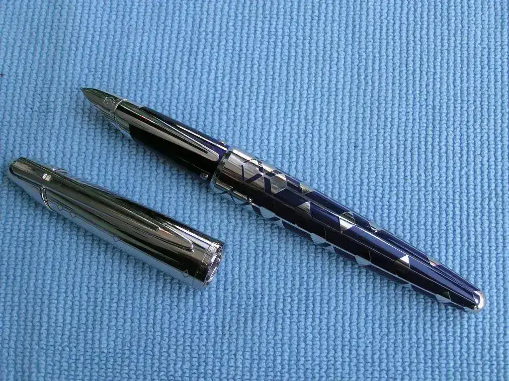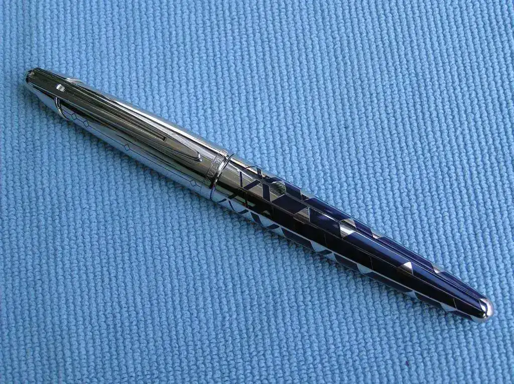 Mas que una pluma es una obra de arte. Basada en el modelo Edson es una actualización del diseño de filigrana (filigree) característico de la marca hace mas de 100 años. En este caso tiene un acabado consistente en unos insertos de laca azul llenando las incisiones realizadas por un maestro artesano en el cuerpo metálico de la pluma. Una vez pulida, la combinación del paladio del cuerpo con la laca azul resulta de gran belleza, a lo que se une la fiabilidad que supone el sistema de alimentación en las plumas Waterman Edson que permiten escribir con un flujo regular en casi cualquier situación.