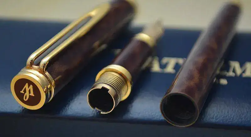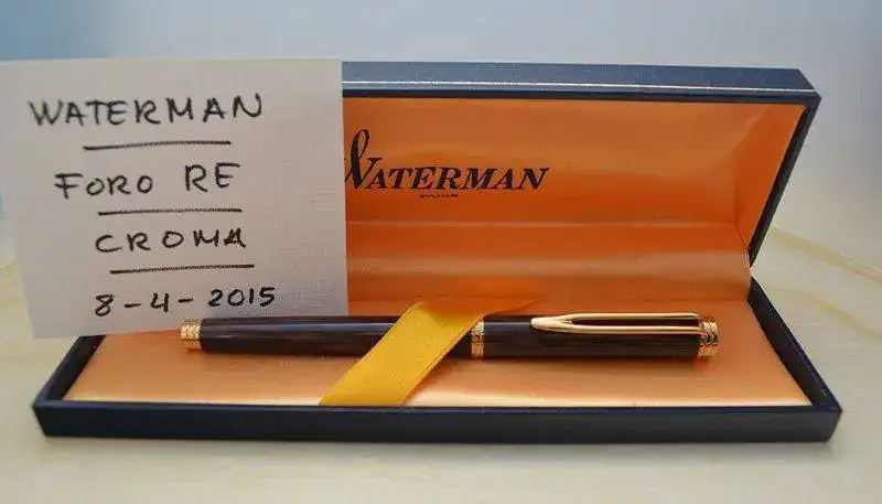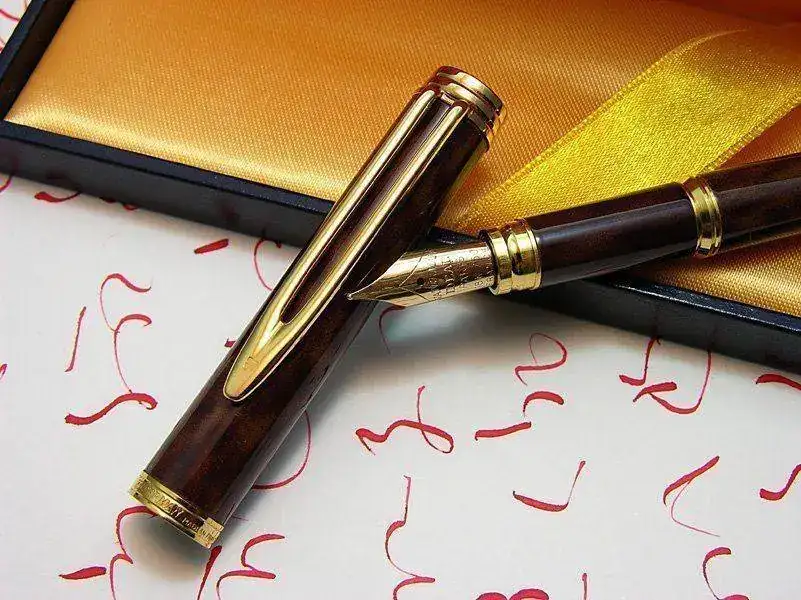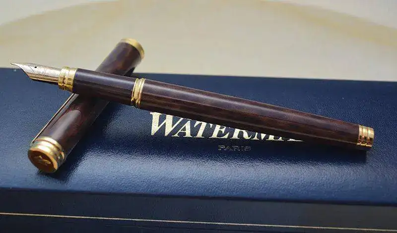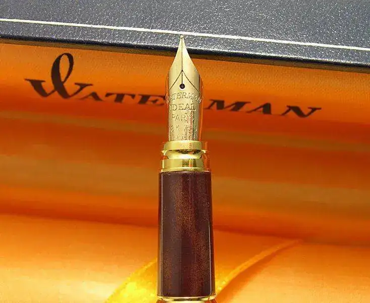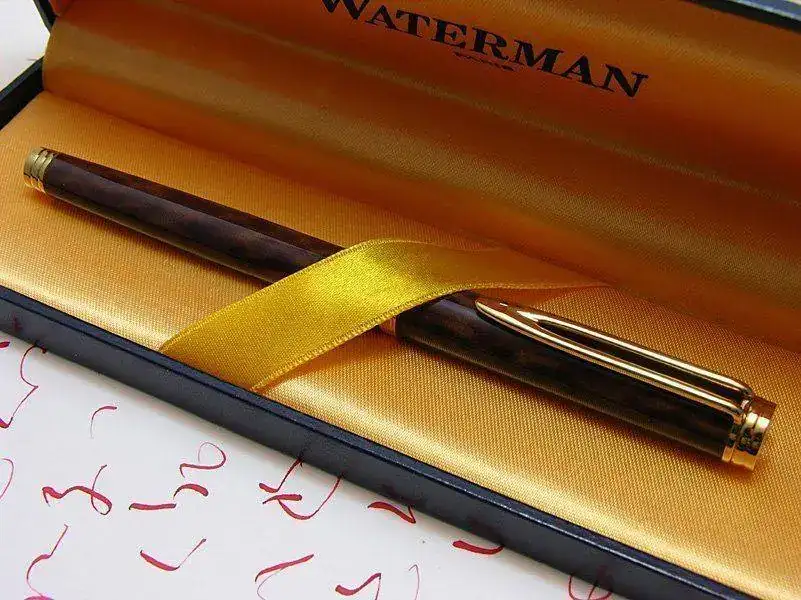 Ofrezco para su venta esta estilográfica WATERMAN GENTLEMAN en acabado lacado marrón marmolizado con detalles en dorado.