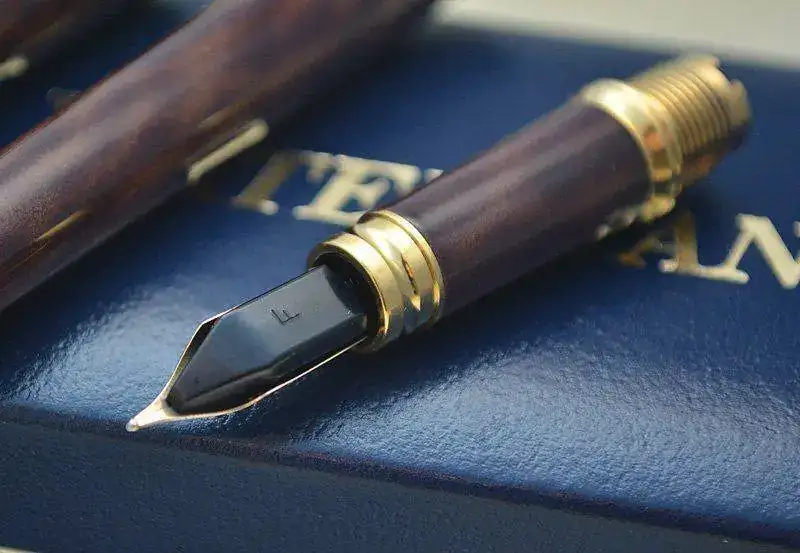 La pluma tiene un plumín de trazo Medio fino, rígido y suave.