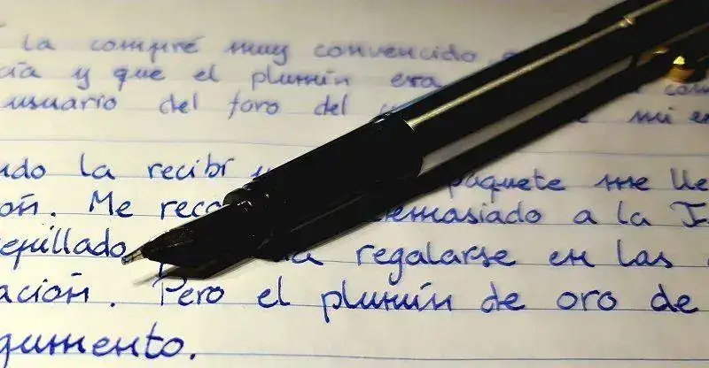 El plumín se comporta como un campeón, pero no es apto para quien busca un mínimo de flexibilidad. Es el plumín más rígido que he probado hasta ahora. Pero aun así, como casi todas mis plumas, puedo estar escribiendo con ella durante horas.