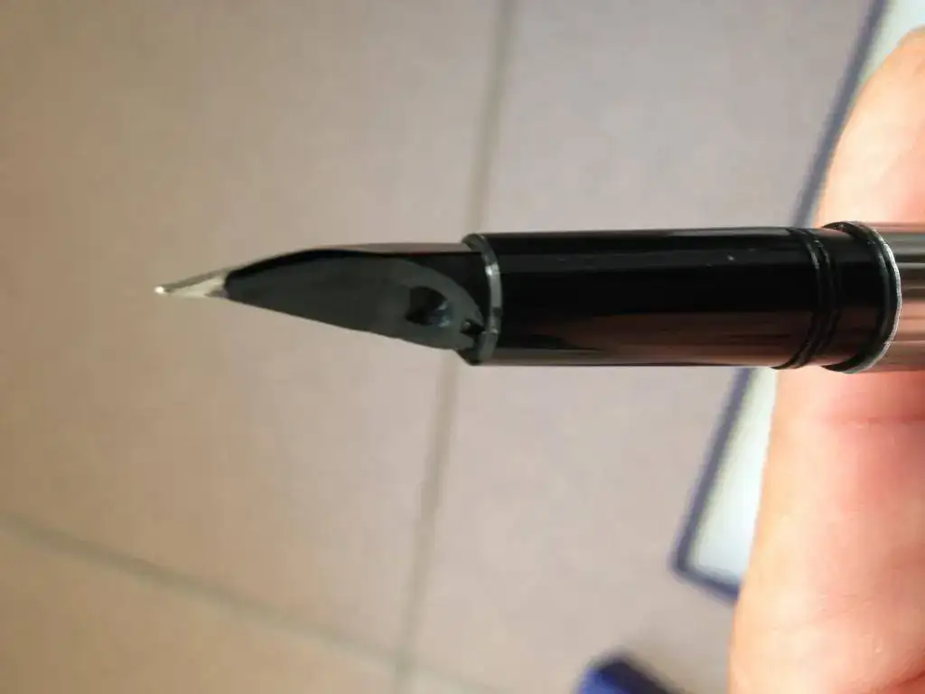 Es una pluma modesta, para estudiantes, con un plumín en punto fino, bien construido, y en este caso con unos acabados especiales dado que las de su familia tienen el cuerpo liso y mate.