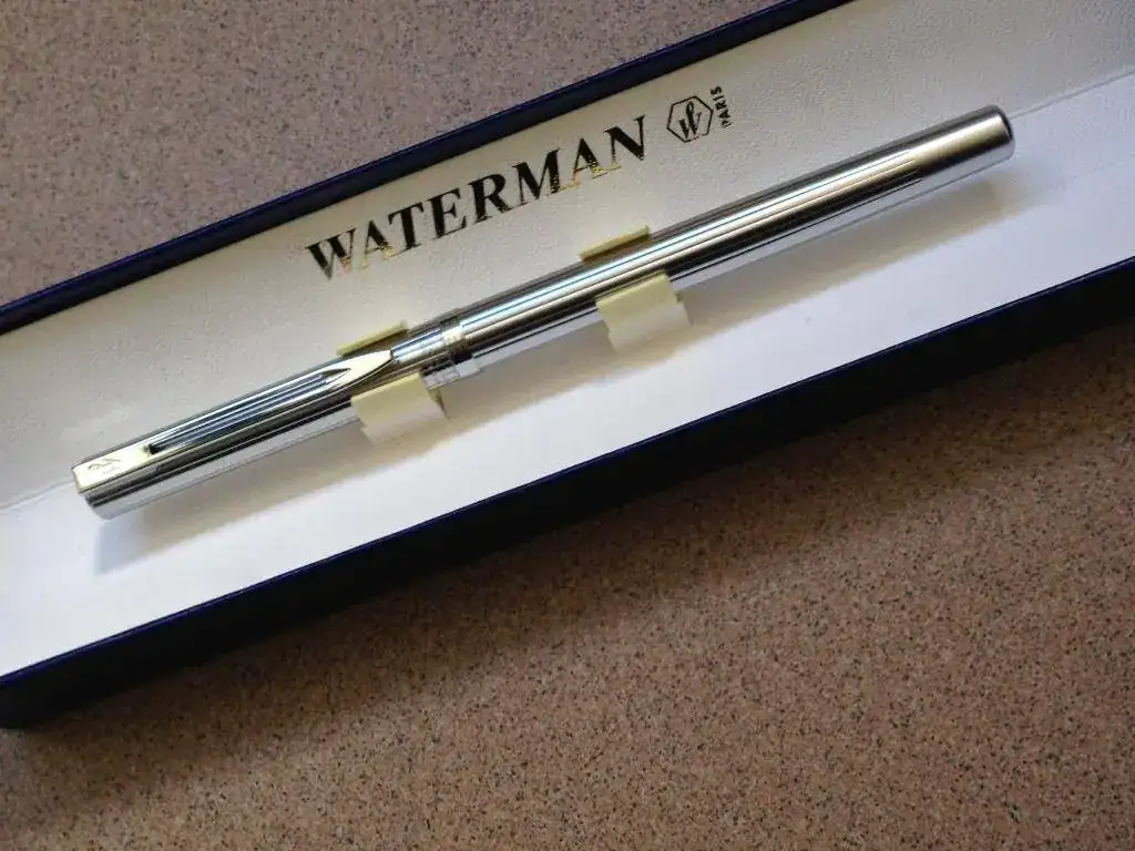 Rebuscando por los cajones me he encontrado un par de cosillas interesantes, una d ellas es esta pluma Waterman completamente sin uso.