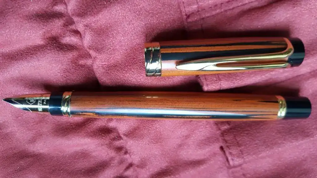 Pues una más que va a salir, esta Waterman Liaison en ebonita red, (más bien con tonos ocres y negros) en punto F suave como la mantequilla, e inmensa pluma de lo más suave que he provado.14,3 de medida, cierre a presión y carga por cartucho-convertidor incluido con el típico sistema de las liaison. Pido por ella 270 Euros, Unas malas fotos y un saludo, por favor no ofertas a la baja, ni cambios.