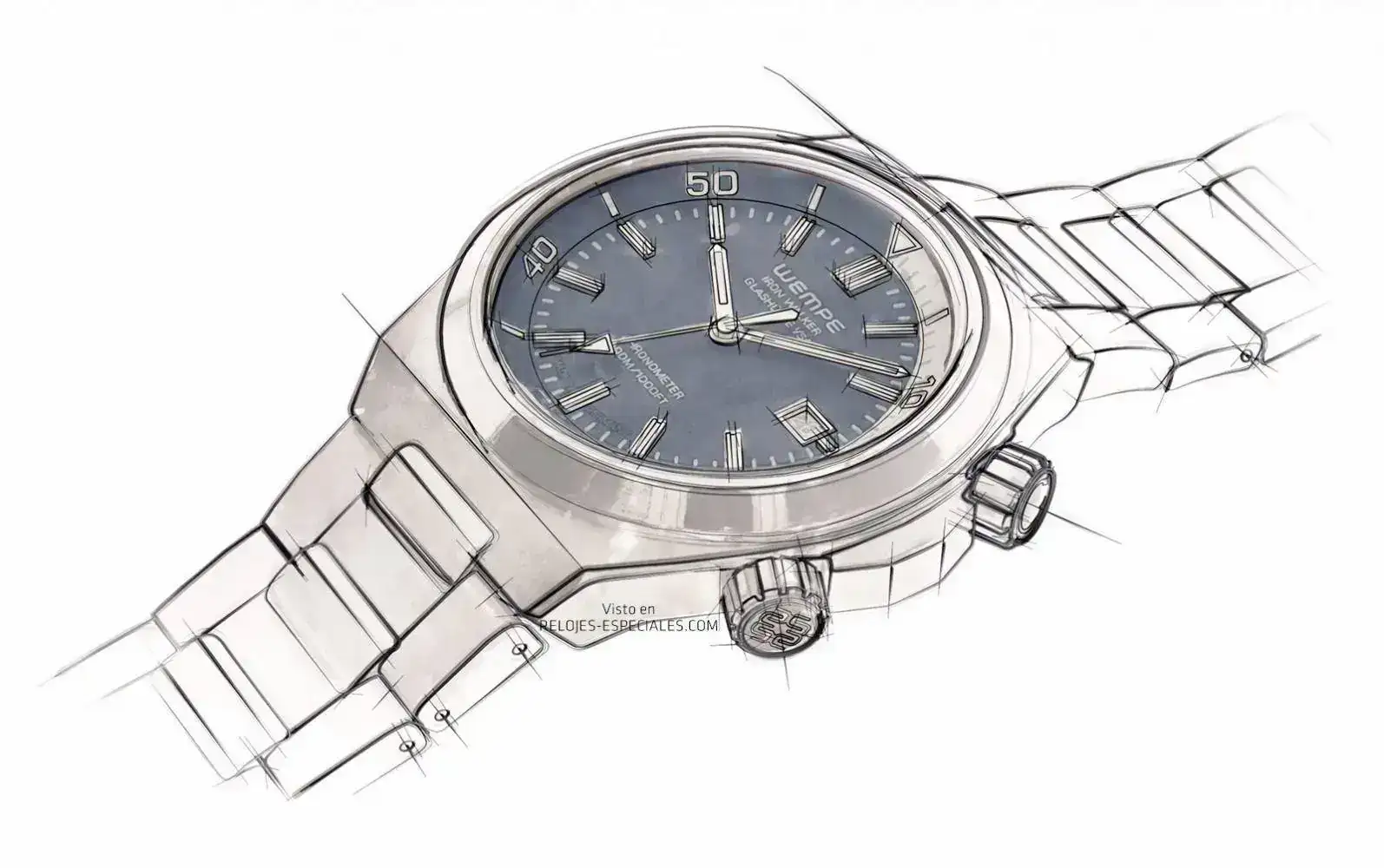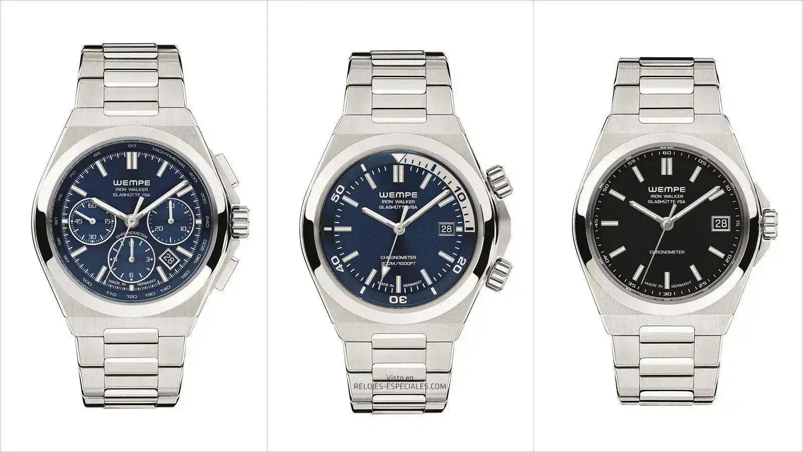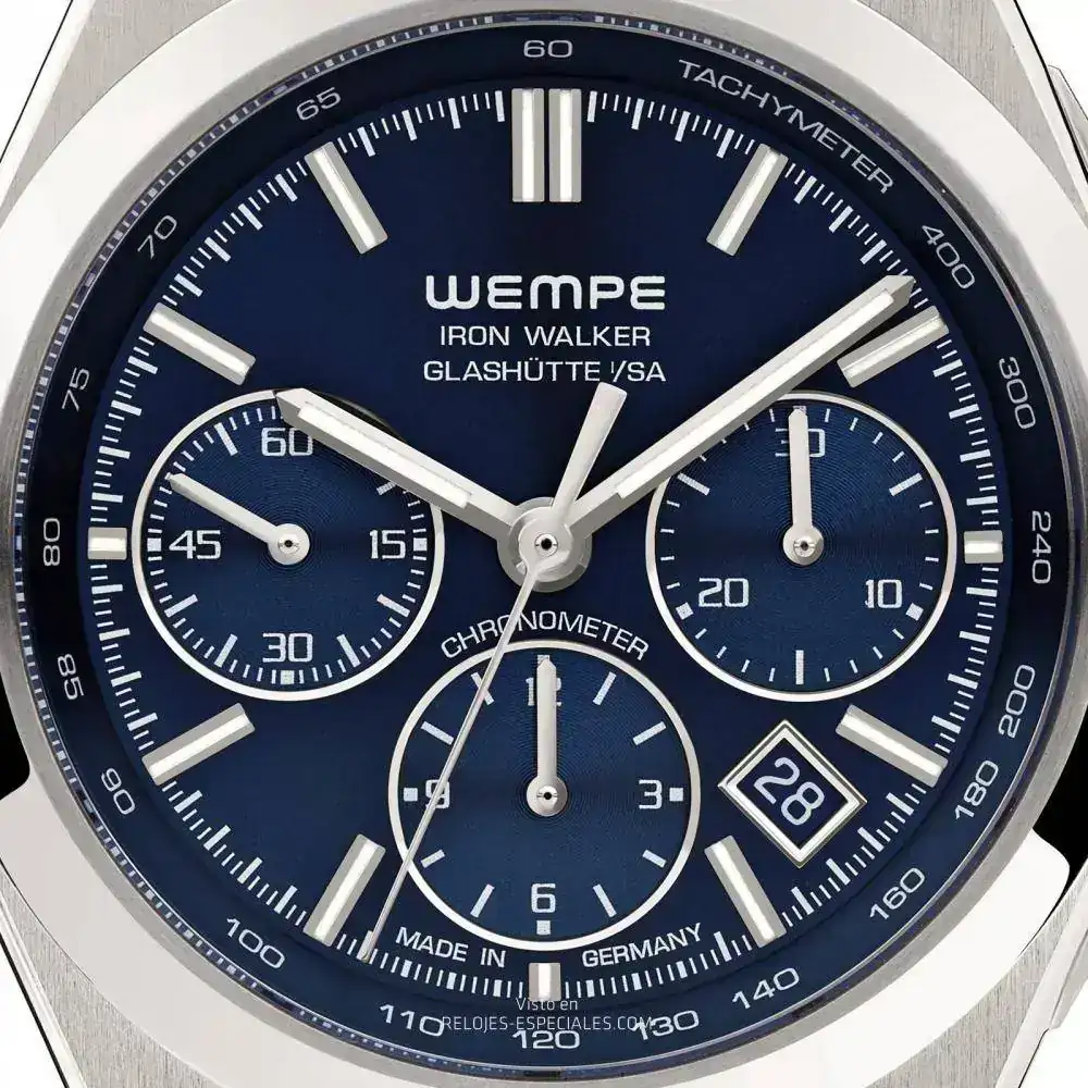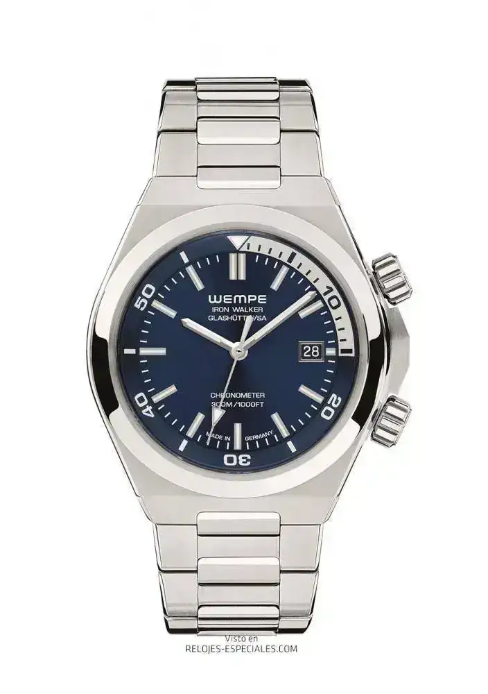 Iron Walker es la tercera línea de relojes tras la Wempe Chronometerwerke, con movimientos de manufactura propia, y los relojes Wempe Zeitmeister, con modelos mecánicos básicos. El carácter de la nueva línea Iron Walker queda patente especialmente en el diseño de la arquitectura de la caja, de acero 316L con perfiles de flancos tanto angulosos como redondeados, mates y pulidos. También produce un efecto de coherencia el brazalete integrado: Como una espina dorsal robusta pero móvil, los eslabones están dispuestos formando una triple hilera, estrechándose para que el reloj se ajuste perfectamente a la muñeca. Los tres modelos que conforman la línea Iron Walker montan cristal de zafiro con tratamiento antirreflejso por las dos caras.