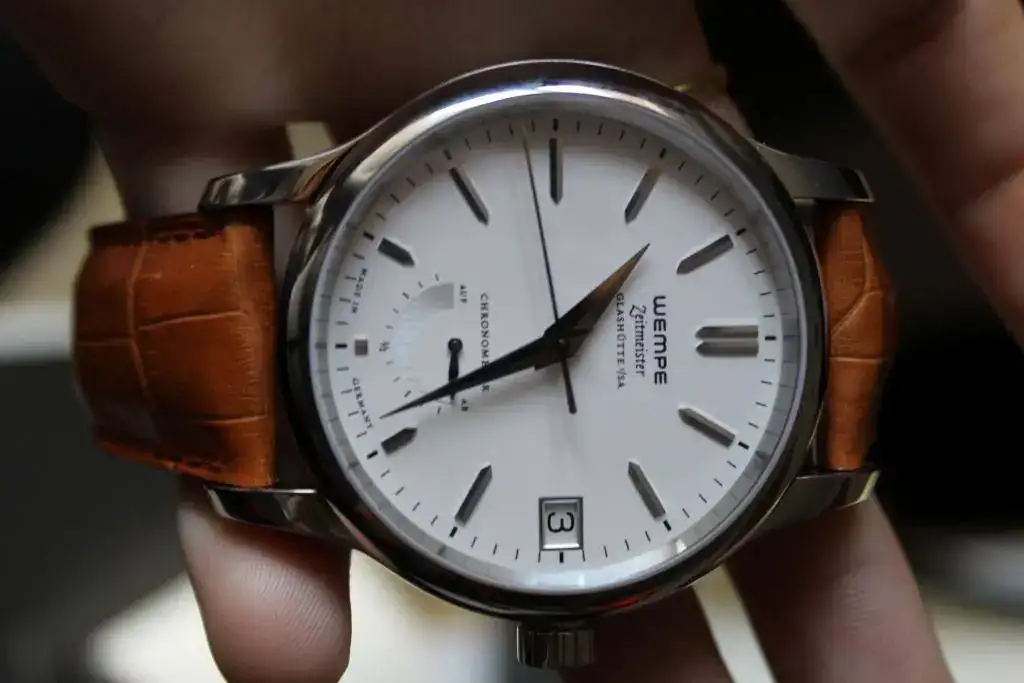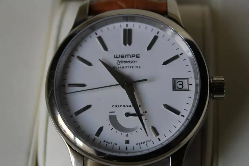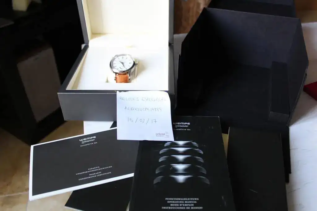 El reloj está impoluto, literal, con pegatinas y todo, pero una de las trabillas(la fija) está agrietada. No sé como ha ocurrido, ni si me lo dieron así, pero el reloj apenas ha salido de la caja, ni siquiera le he quitado el lacre del cierre. Yo creo que se podría hablar con wempe y que cambien la trabilla de la correa.