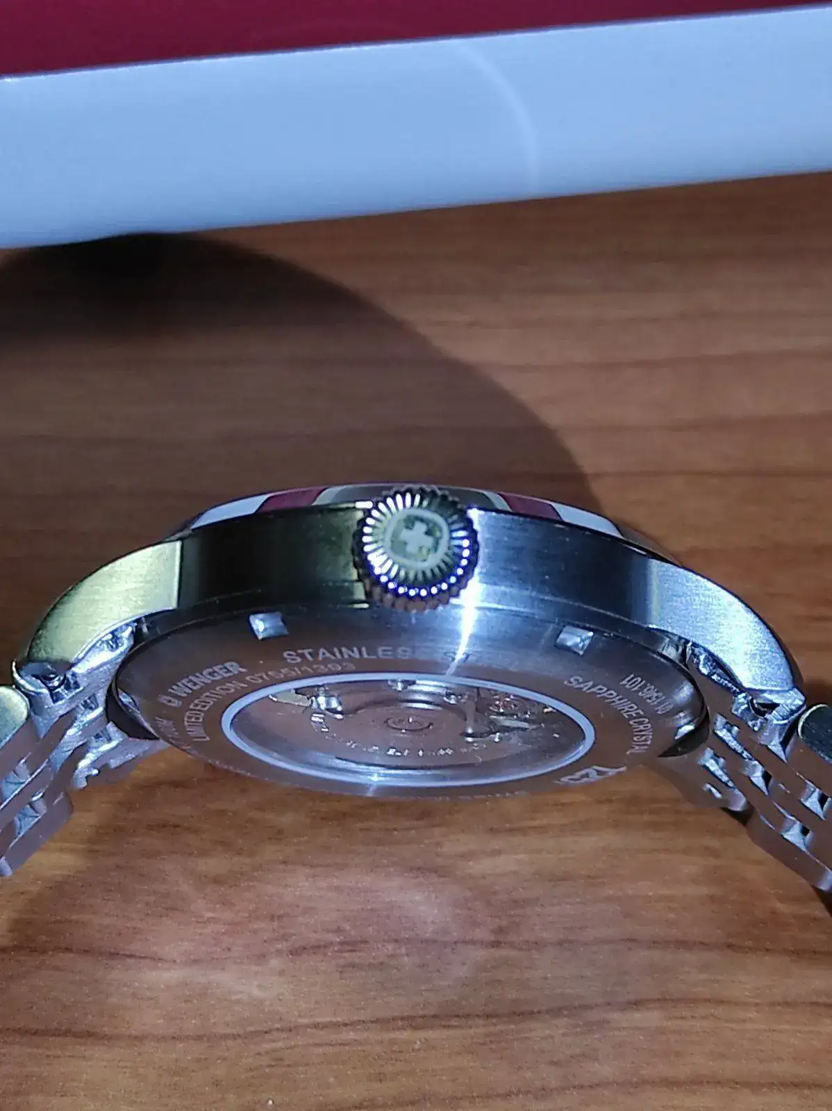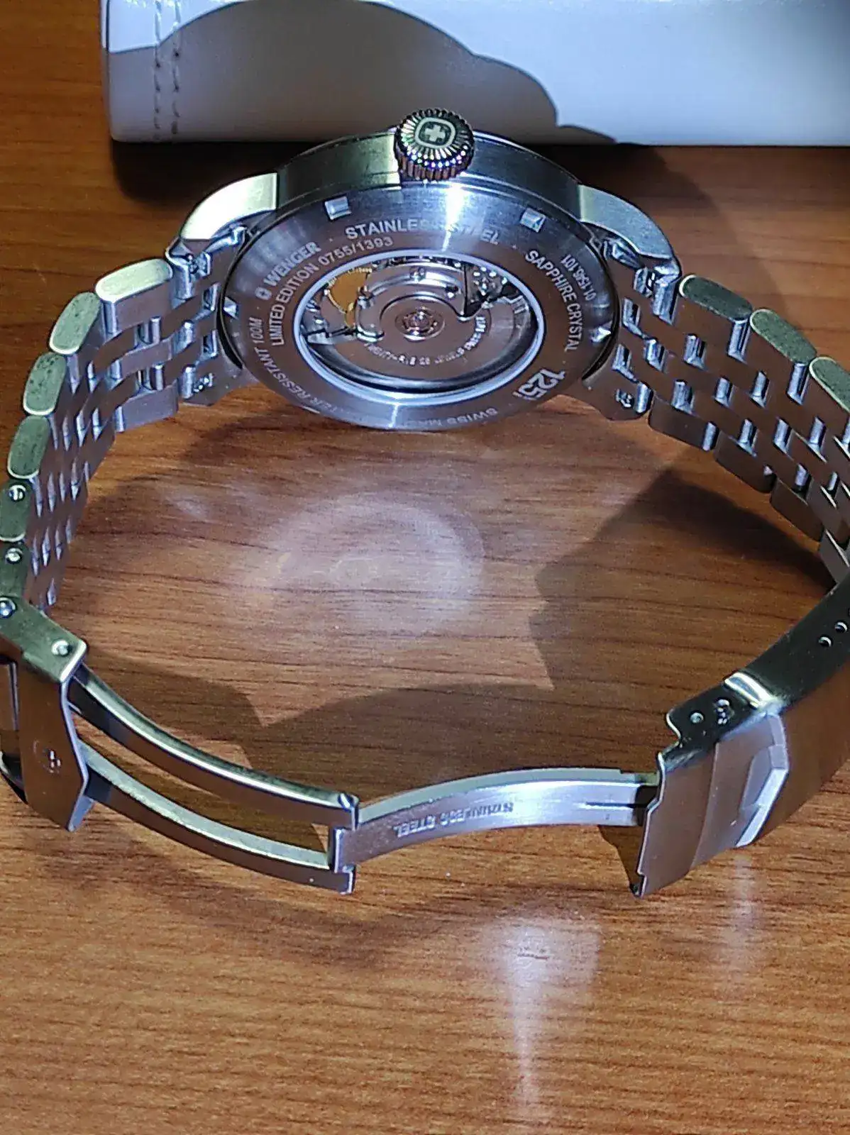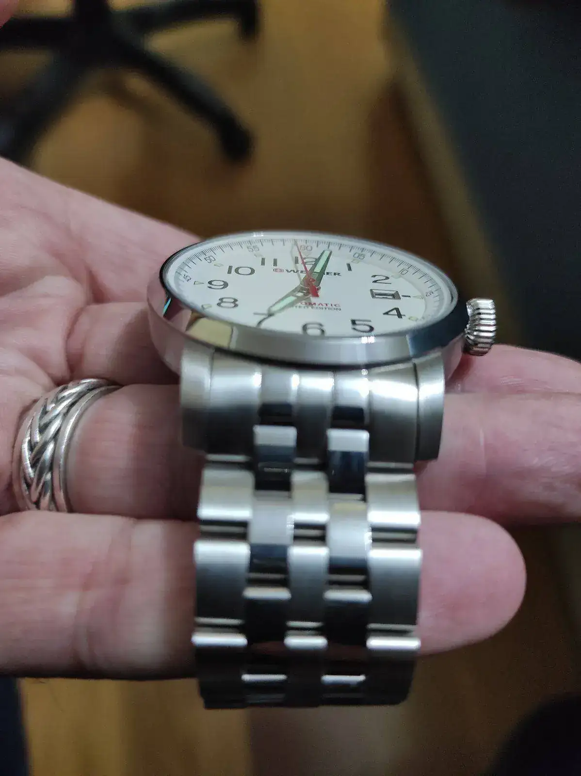 Feliz año nuevo a todos. Vendo este bonito Wenger Attitude Limited Edition de reestreno. Es automático y monta un Eta2824-2 muy bien ajustado. Lo tengo en el watchwinder desde que llegó para comprobar la marcha y como digo, va perfecto. Tienen muy buenos acabados y un lumen bastante bueno. El reloj trae correa de piel y deplo firmado y también pedí el brazalete, para alternar ambos. Comprado a mediados de diciembre, lo he utilizado en dos ocasiones, por lo cual está impecable. Lo vendo para financiar la compra de otro. Viene completo, caja, papeles y garantía. El precio, 270 euros con envío incluido. Con el armis, en tienda sobrepasa los 400 euros bien a gusto.