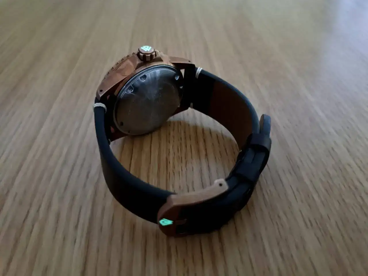Los complementos son de primera categoría, viene con un estuche de cuero envejecido y tres correas: cuero, goma, nato. Especialmente sorprendido por la calidad de las correas que se podrían valorar tranquilamente en unos 100 euros. No entiendo como se puede dar tanto por tan poco, larga vida a Wicked !!!