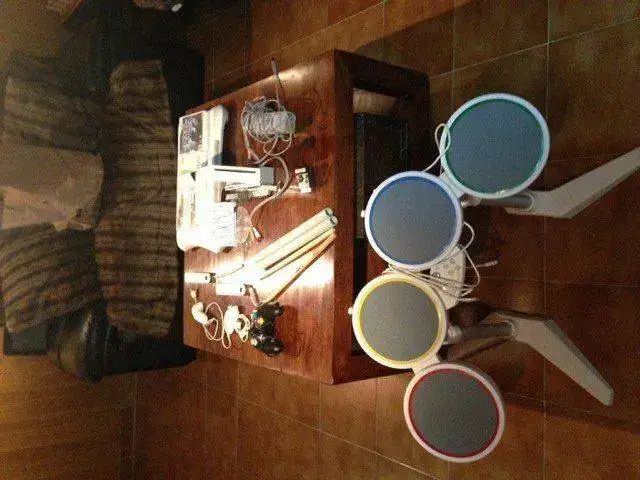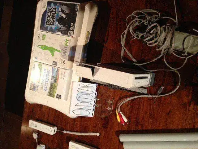 , luego está la tabla wiifit creo que se llama con su juego correspondiente y una batería , también con el juego que se vendía , el Rock band y evidentemente , el sensor y todos los cables necesarios para poder comenzar a hacer el indio enseguida , creo que no me dejo nada , huelga decir que el coste de todo esto creo que supera los 500 euros pero por falta de uso , si lo quieres , por 180 euros o mejor oferta razonable ,más los portes , a no ser que la puedas recoger en mano , es tuya .
