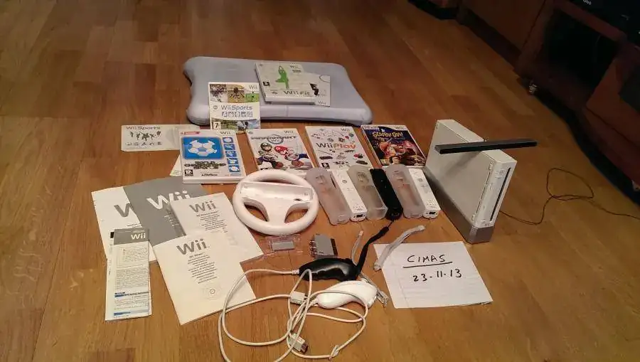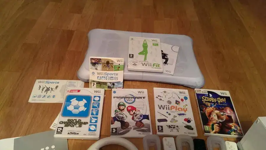 Pues eso la niña a crecido y ya no la usa, se trata de la consola wii, la entrego con tres mandos con sus protectores, dos nunchuk (los mandos pequeños q se acoplan a los otros), un volante, y la tabla Balance Board con su juego Wii Fit, original de nintendo, se entrega con todos sus cables y las instrucciones, ademas de los siguientes juegos: Wii Sport, Wii Play, Word Championship (estos tres reunen varios juegos cada uno de ellos), Mario Kart, Scooby Doo, y el ya mencionado Wii Fit, para ponerse en forma, ejjemm, Por todo pido 150 euros, podria interesarme el cambio por algun reloj diver o algo actual para el cambio lo valoro en 200 euros, con envio incluido o bien entrega en zona norte de Madrid, Saludos.