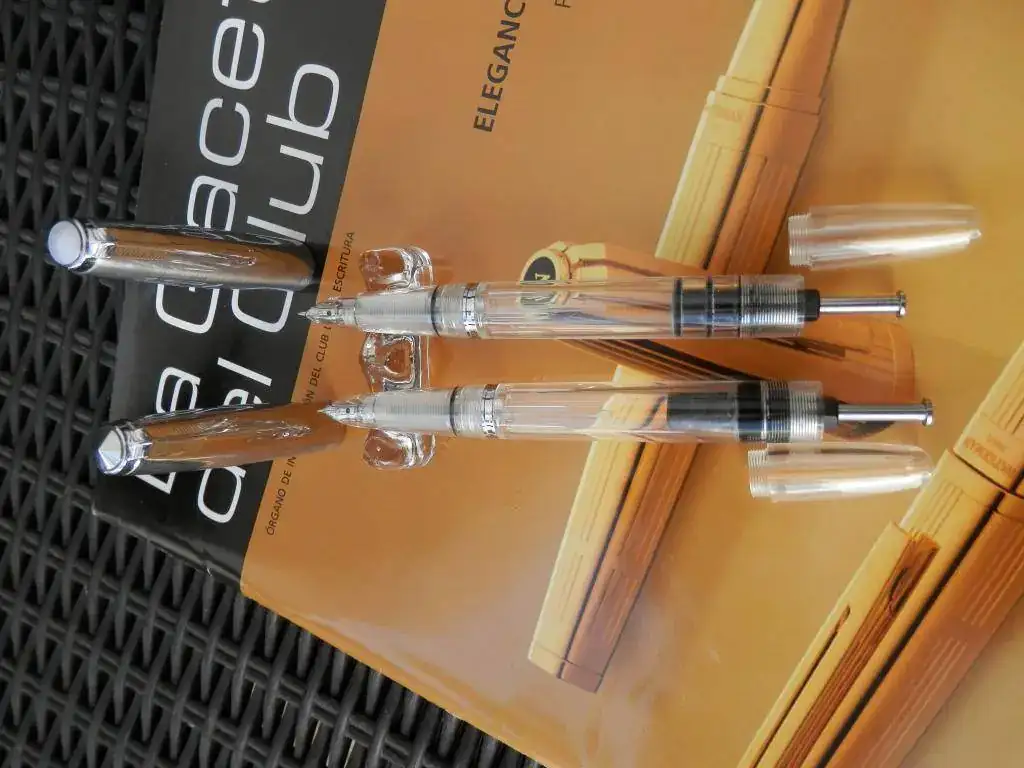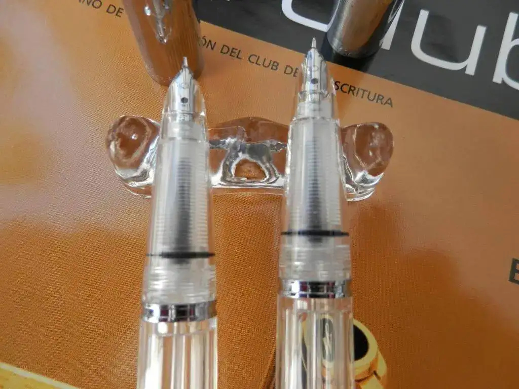 El capuchón parece más de latón que de acero. Los plásticos no son los de la Parker, y el plumín es de acero. Por 10 € no se puede esperar más. Pero, dicho todo lo anterior, la estilográfica escribe bastante bien. La pieza que os muestro tiene un plumín F, que al venir de China es un EF en toda regla, pero con buen flujo y agradable suavidad. No da ni mucho menos la impresión de escribir con una aguja y ofrece una calidad a la altura de las recientes Wing Sung 698 y 618. Y las hay de varios colores (incluso creo haber visto una "demonstrator").