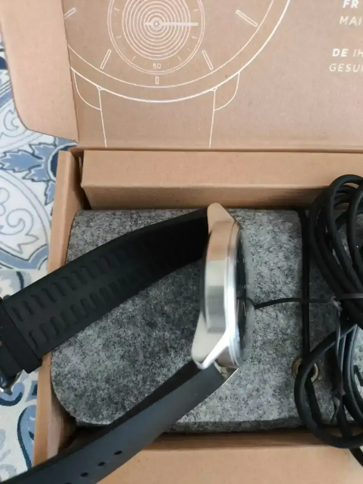 El reloj está en perfecto estado, sin golpes ni roces. Lleva cristal de zafiro y la magnífica correa de fluorocarbono. Se envía con el cable cargador , el estuche de viaje en fieltro y caja interior. La batería le puede durar hasta 4 semanas con la función de control de sueño y pasos activada.