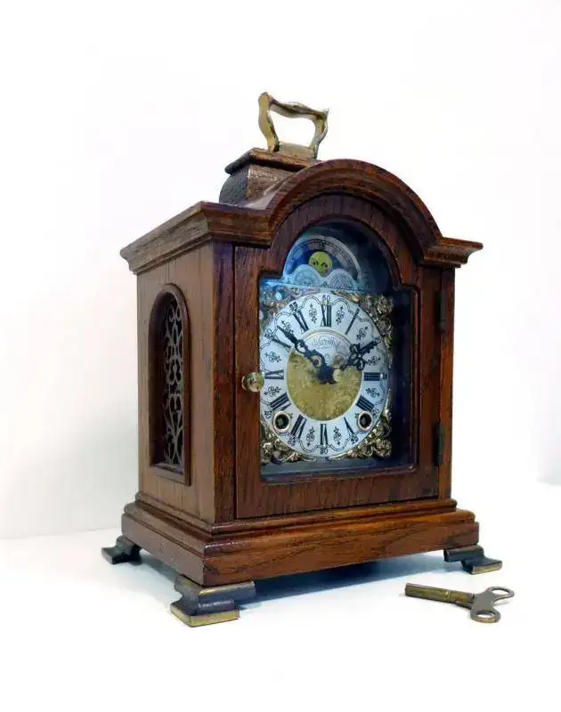 Se trata de un reloj de sobremesa, WUBA Warmink, el típico que tiene la caja parecida a un mausoleo, con fase lunar.