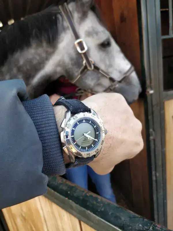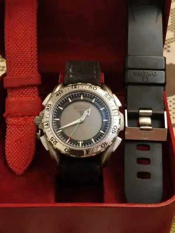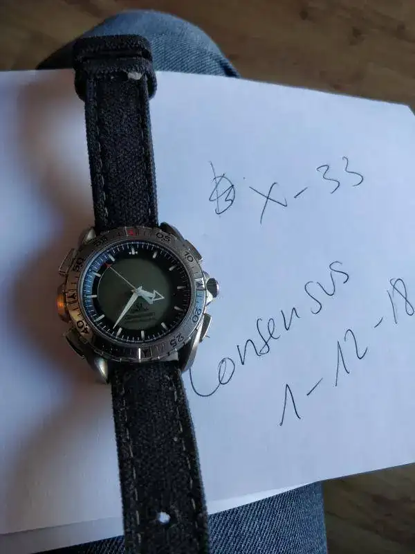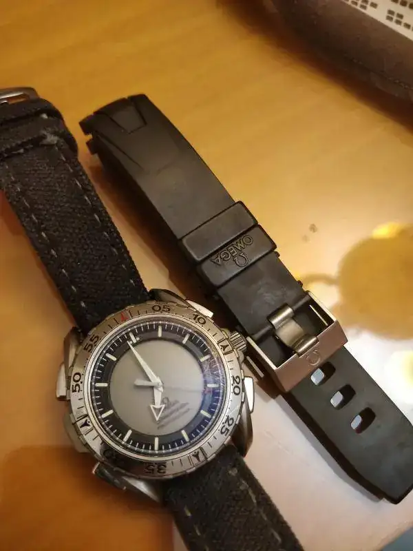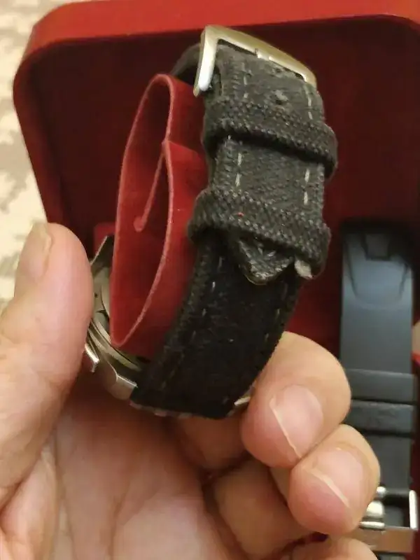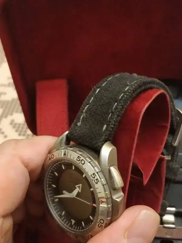 Alguna foto más de este icónico reloj x33 de primera generación. La correa textil q lleva va incluida es artesana de gran calidad color verde oscuro conjuntando con la esfera del reloj. La mandé hacer todo textil sin cuero por dentro para q sea más cómoda. La roja algo gastada ya. El caucho negro en buenas condiciones.