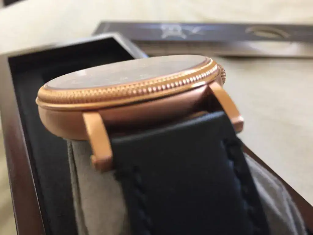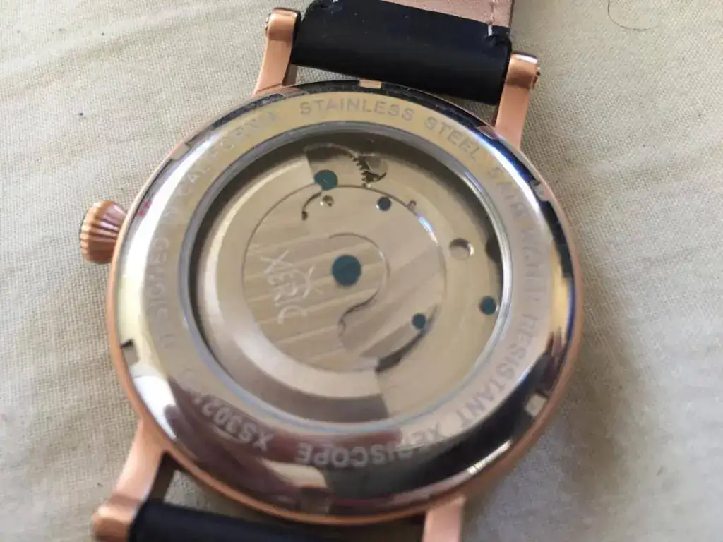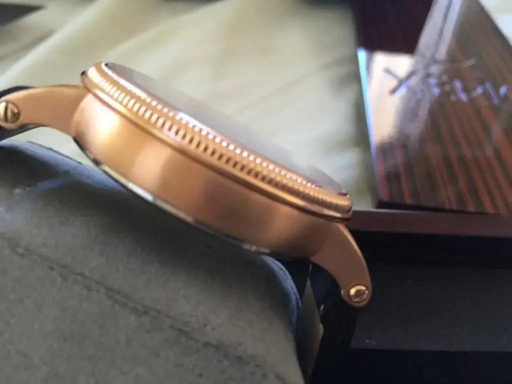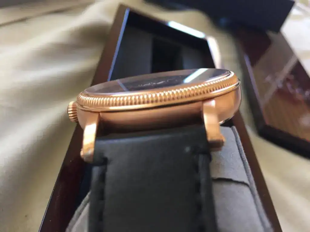 El movimiento automático va muy bien de marcha, y la caja tiene pequeñas marcas de un uso mínimo, diría que al 90%. Me he esforzado en las fotos y es difícil de encontrarlas.